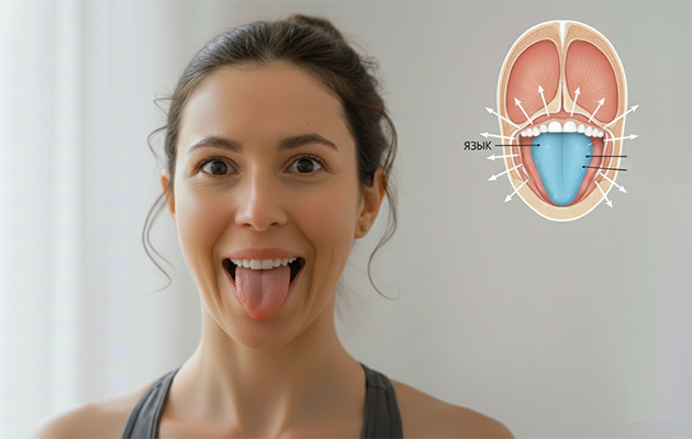 - Полностью расслабьте язык, так чтобы он лежал не касаясь передних зубов.