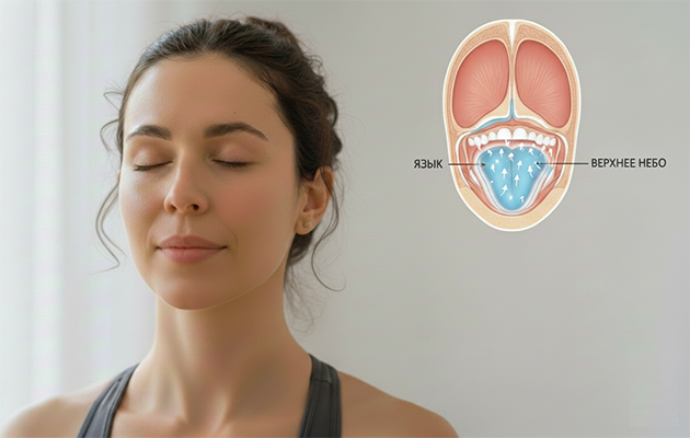 - Равномерно давите языком на верхнее небо, без особых усилий.