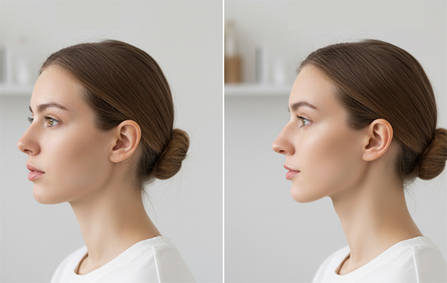 Если обратить внимание на фото после упражнений по мьюингу, которые проходят под руководством врача стоматолога-ортодонта, то виден такой результат: явная поддержка мягких тканей, выражен угол нижней челюсти. Благодаря выдвижению нижней челюсти вперед достигнуты гармоничные черты профиля лица.