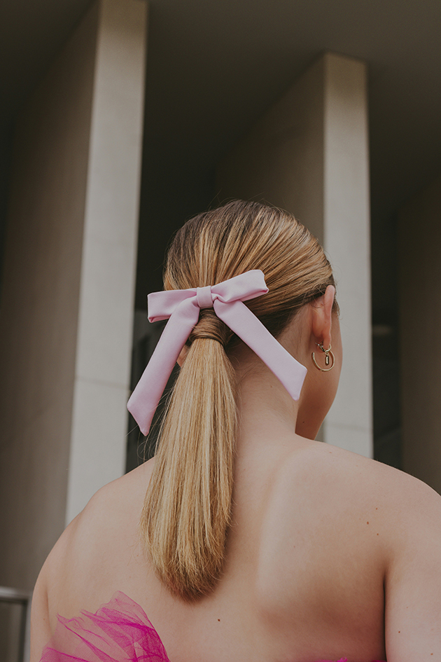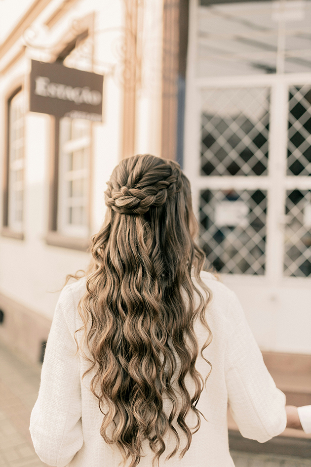 Например, к длинной косе лучше добавить легкую ленту: пропустить ее через волосы или повязать внизу. На коротких волосах красиво смотрятся маленькие колечки или стразы, которые прикрепляются на единой леске поверх волос. Если вы решите сделать пучок, то попробуйте дополнить прическу элегантными зажимами для волос серебряного или золотого оттенка.