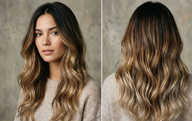 Фото шатуша на длинных волосах демонстрирует всю прелесть плавного перехода. За счет длины омбре от темного к блонду раскрывается максимально эффектно.