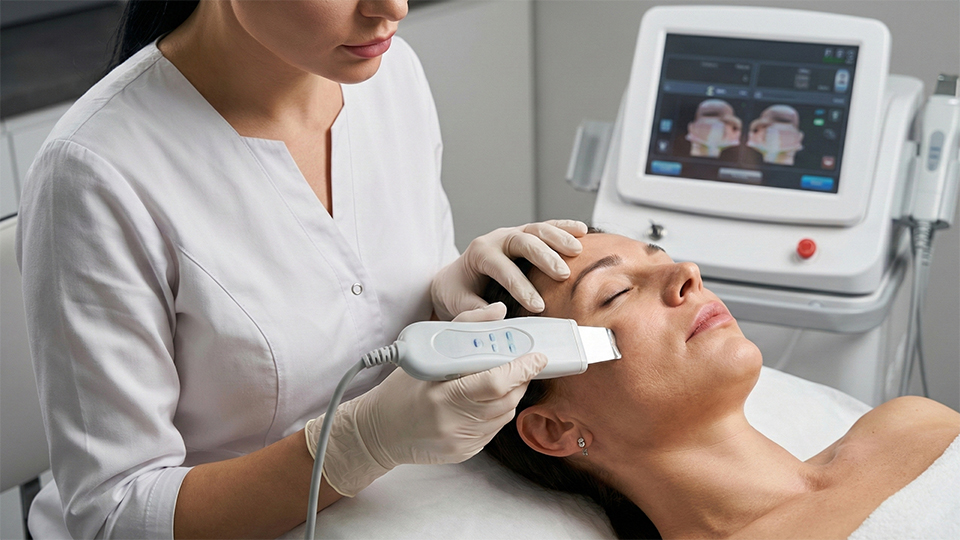 Перед процедурой врач сначала осматривает кожу и проверяет, нет ли на ней свежих травм и воспаленных участков. Если все в порядке, выполняется ультразвуковое сканирование тканей лица для определения глубины залегания SMAS. Как говорит эксперт, некоторые врачи пропускают этап сканирования. Однако он очень важный, потому что позволяет точно подобрать рабочие картриджи и воздействовать ультразвуком на нужной глубине.