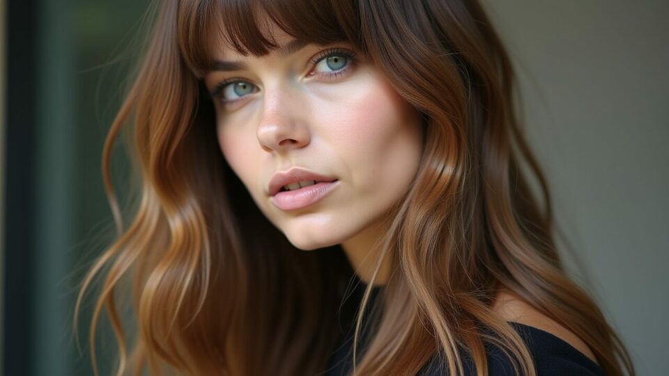 Прямая челка — редкость для стрижки шегги 2025. Обычно ее также филируют и стригут либо в форме арки, либо раздвигая на две половинки, красиво обрамляющие лицо. Множество слоев вокруг лица — главная особенность шегги с челкой, которая может быть как косой, так и прямой, либо же иметь вид шторки.