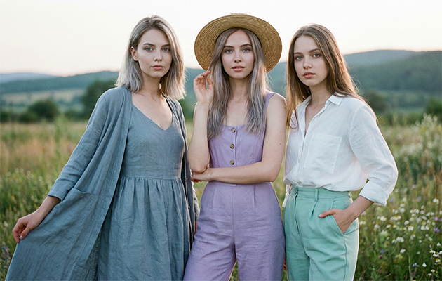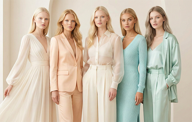 Этот сезон теплый, но не глубокий. Черты мягкие: брови не сильно темнее кожи, ресницы не выглядят графично. Холодные серые и синеватые оттенки быстро «глушат» лицо — появляется бледность, особенно вокруг глаз. Светлые теплые ткани такого эффекта не дают, поэтому именно их берут за ориентир при проверке.