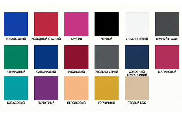 | Температура | холодная | кобальтовый, холодный красный, фуксия |