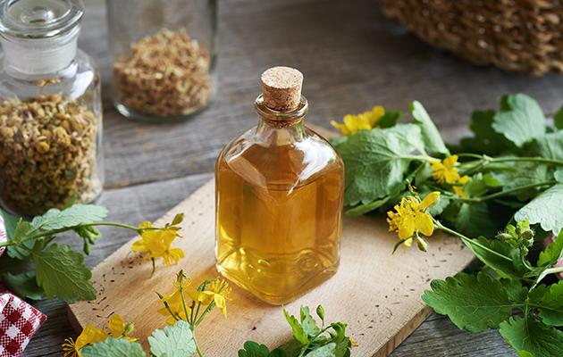 Название «чистотел» говорит само за себя: чистое тело, и тому есть объяснение. Растение борется с различными кожными заболеваниями, в том числе с грибком. Помимо этого, обладает антисептическими и противовоспалительными свойствами. Для приготовления ванночки возьмите 5 ст ложки сушеного чистотела и добавьте его в половину литра воды. Залейте чистотел кипятком, и пусть настаивается 30 минут. Вымачивайте ступни в отваре минимум 20 дней подряд. Если ситуация сильно запущенная — можно сделать настойку, но тогда рецептура меняется.