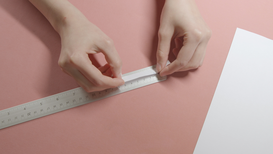 - Разверните полоску бумаги и измерьте расстояние от края до отметки линейкой или измерительной лентой (в миллиметрах).
