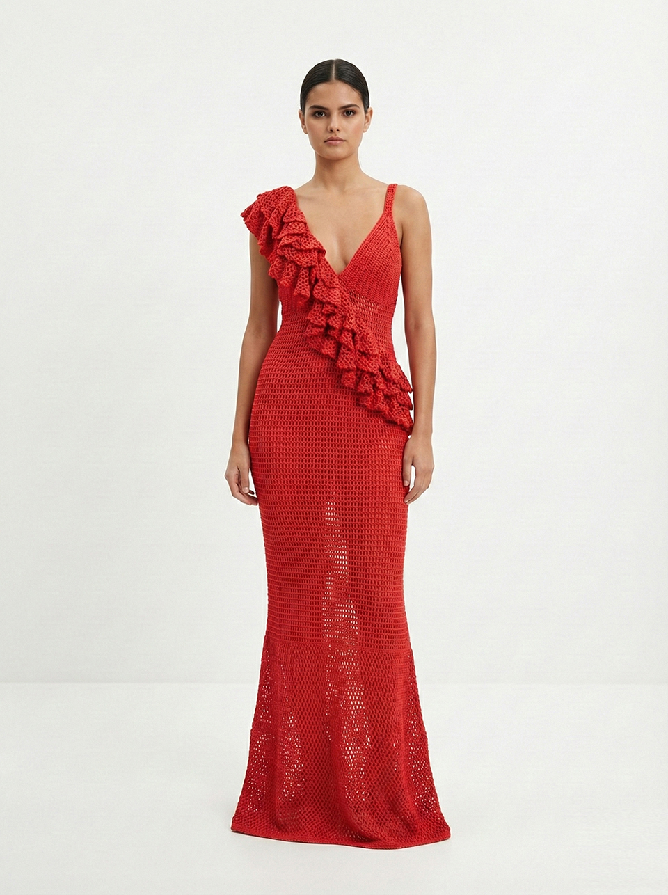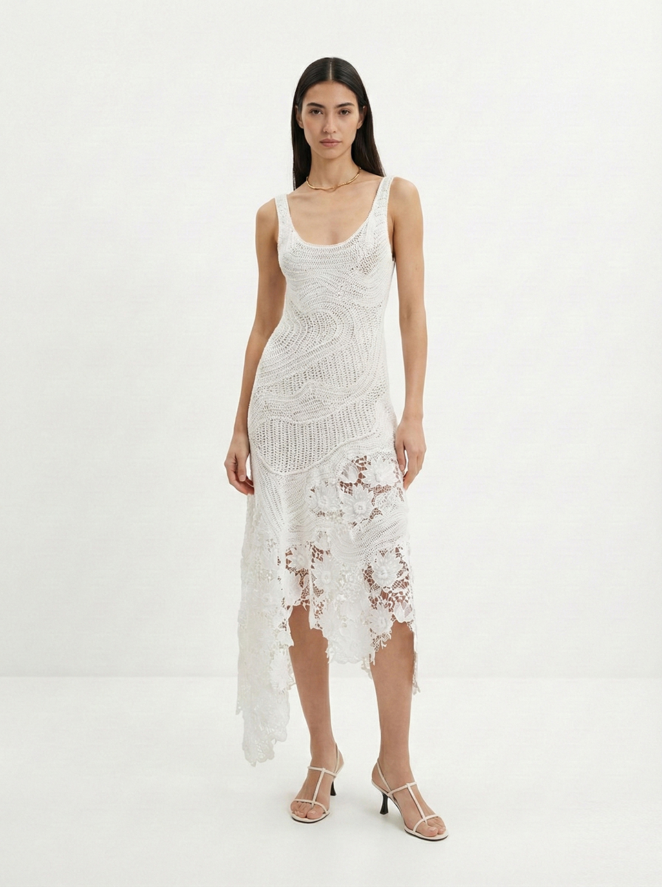 - вязанные ажурные платья, которые имитируют ручное вязание крючком;