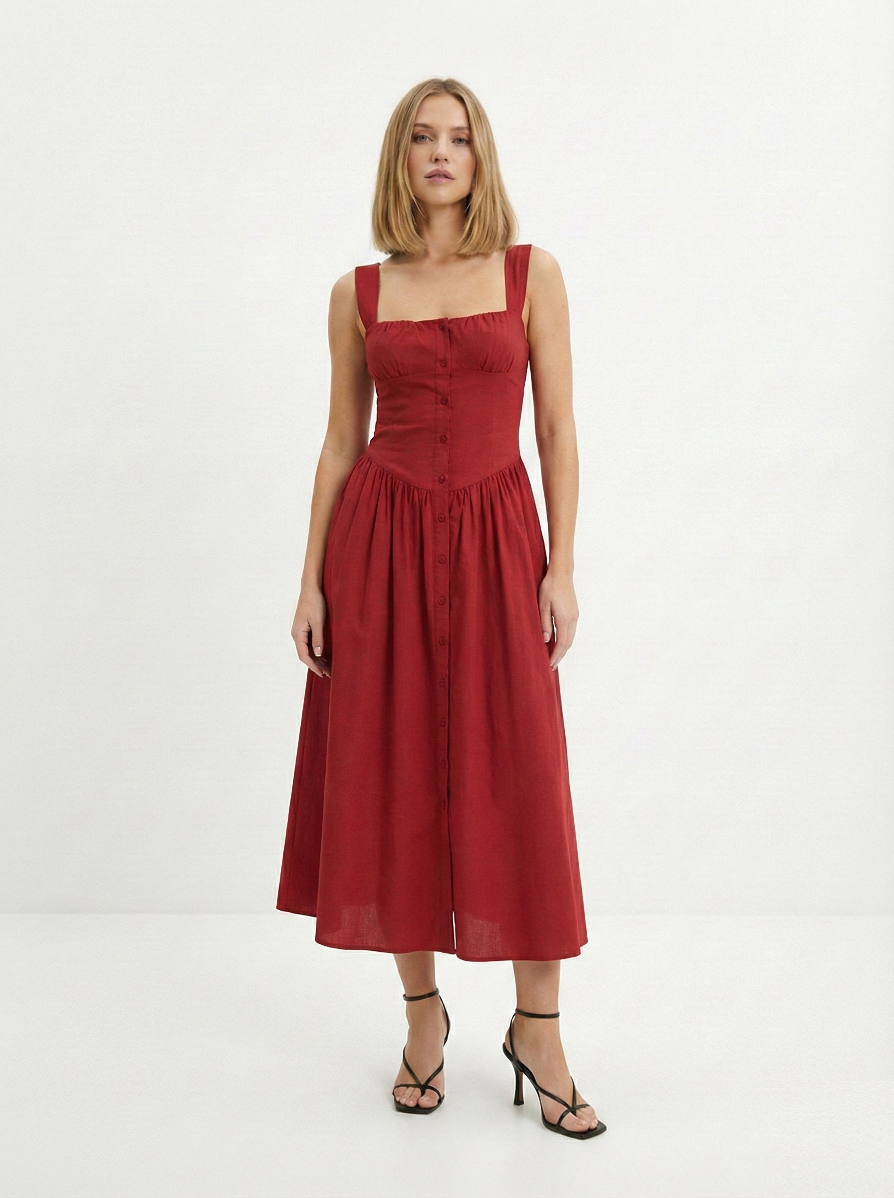 Подойдут тем, кто предпочитает простые силуэты, четкие линии и отсутствие декора. Обычно они выполняются из более плотных летних тканей — денима, хлопка, вискозы. Минималистичные модели легко вписываются в повседневный гардероб и подходят для разных ситуаций. Льняные варианты остаются универсальным выбором на лето.
