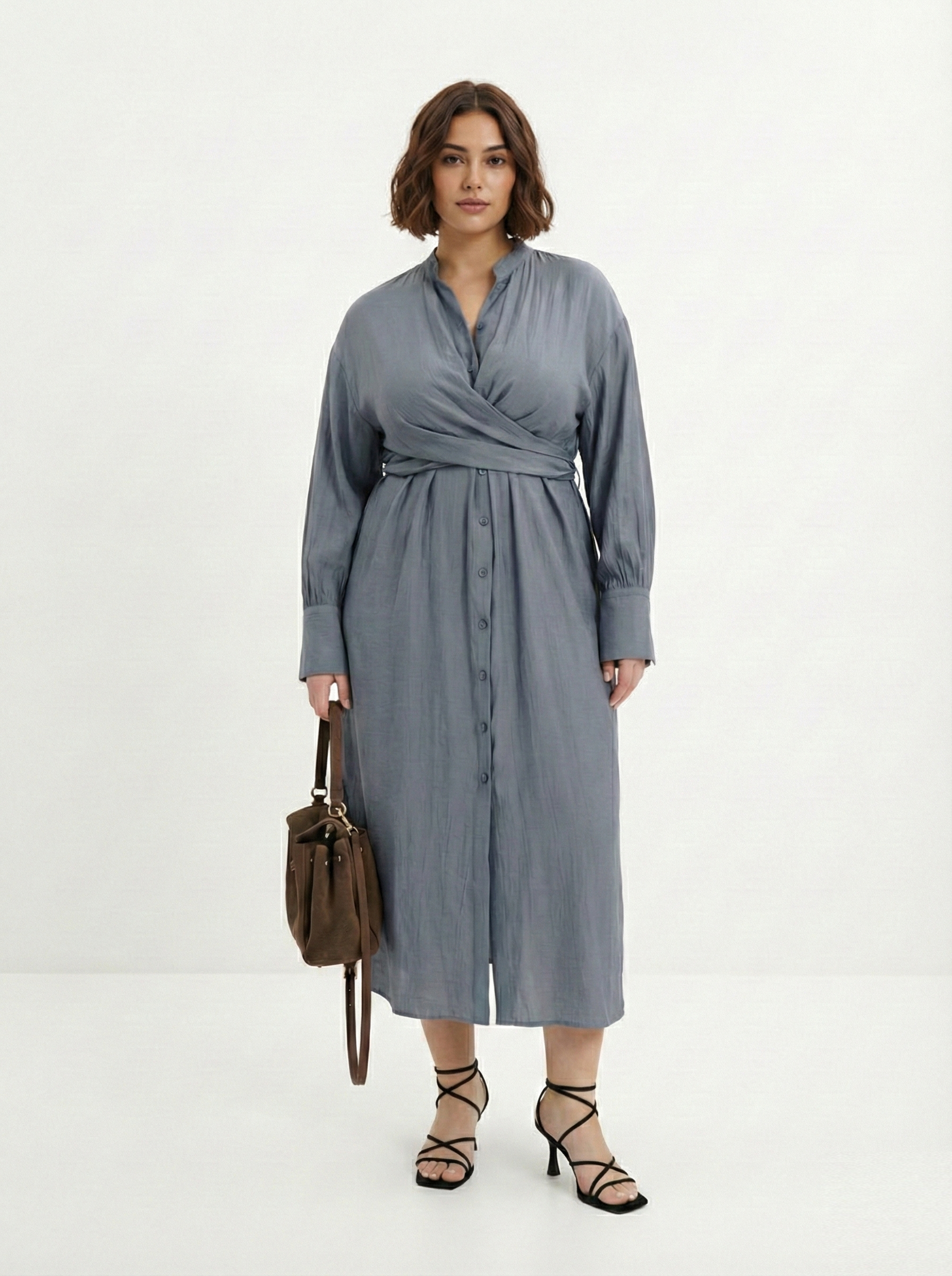 Этот вариант летнего платья по-прежнему популярен. Девушкам плюс сайз лучше подбирать модели свободного кроя или оверсайз длины макси или миди. В них комфортно даже в летний зной, если правильно подобрана ткань: хлопок, лен, батист. Летнее платье-рубашка встречалось на подиумах весны-лета 2026, что говорит об актуальности кроя. Этот хит помнят еще с восьмидесятых — на главной героине фильма «Ирония судьбы» (1975) — горчичное платье-рубашка. Надя надела его, чтобы встретить в нем Новый год.