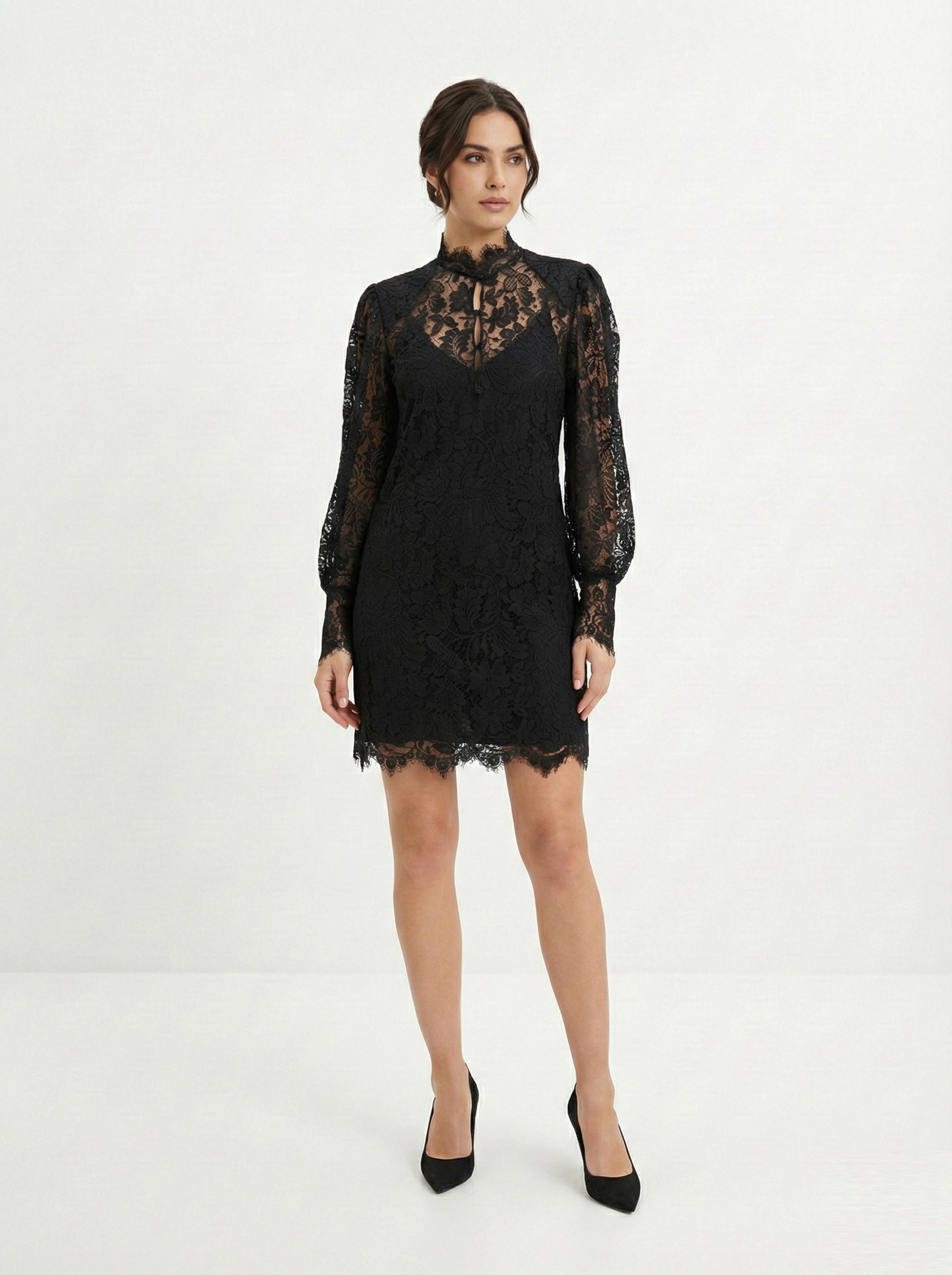 - обладательницам большого бюста рекомендуется избегать мини-платья с глубоким вырезом — такая комбинация может выглядеть неуместно;
