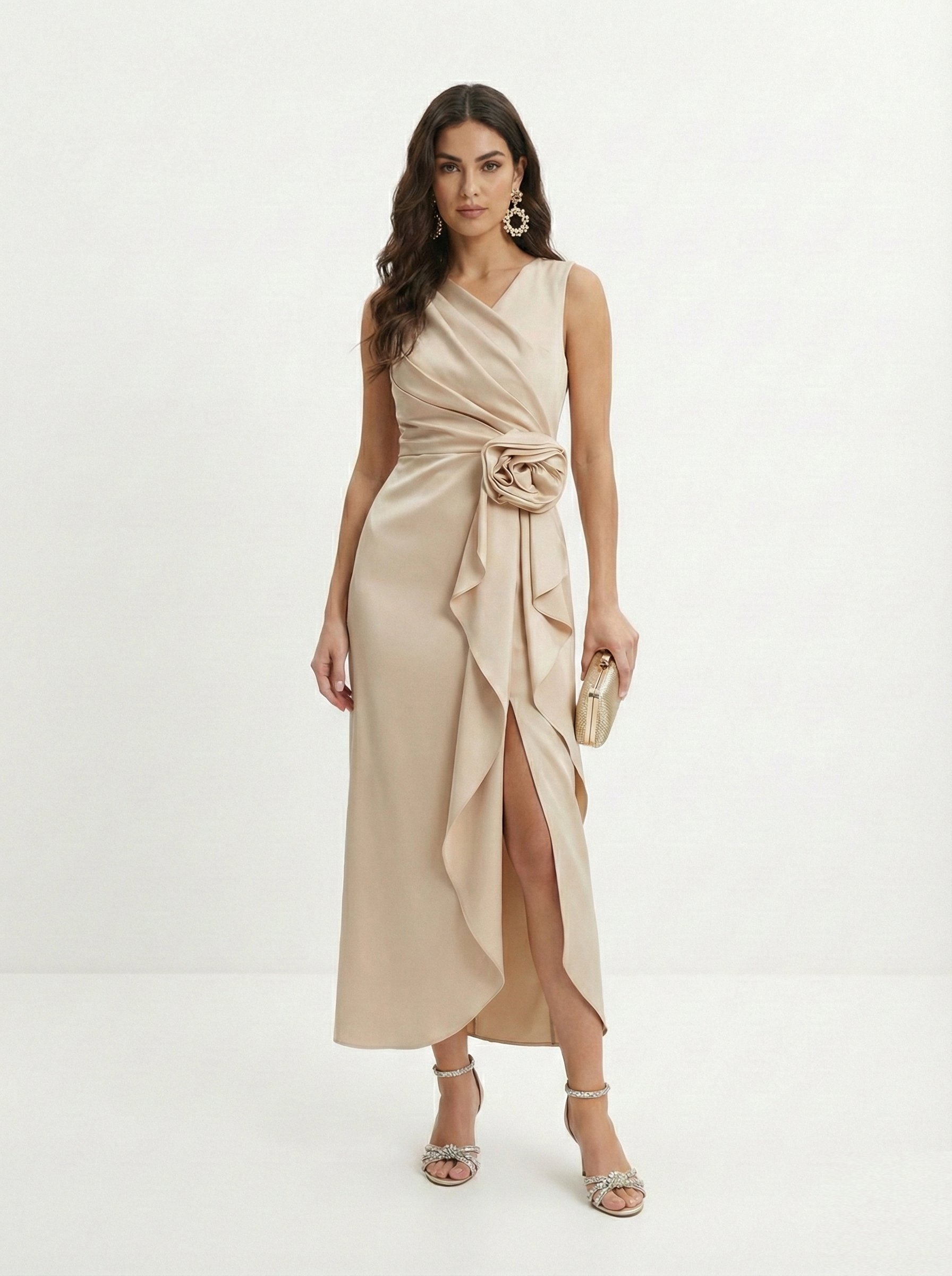 - Платья с асимметрией. Это может быть декольте на одно плечо, с одним рукавом, модели с асимметричным подолом, разрезом. Такие платья придают образу динамику и современное звучание.