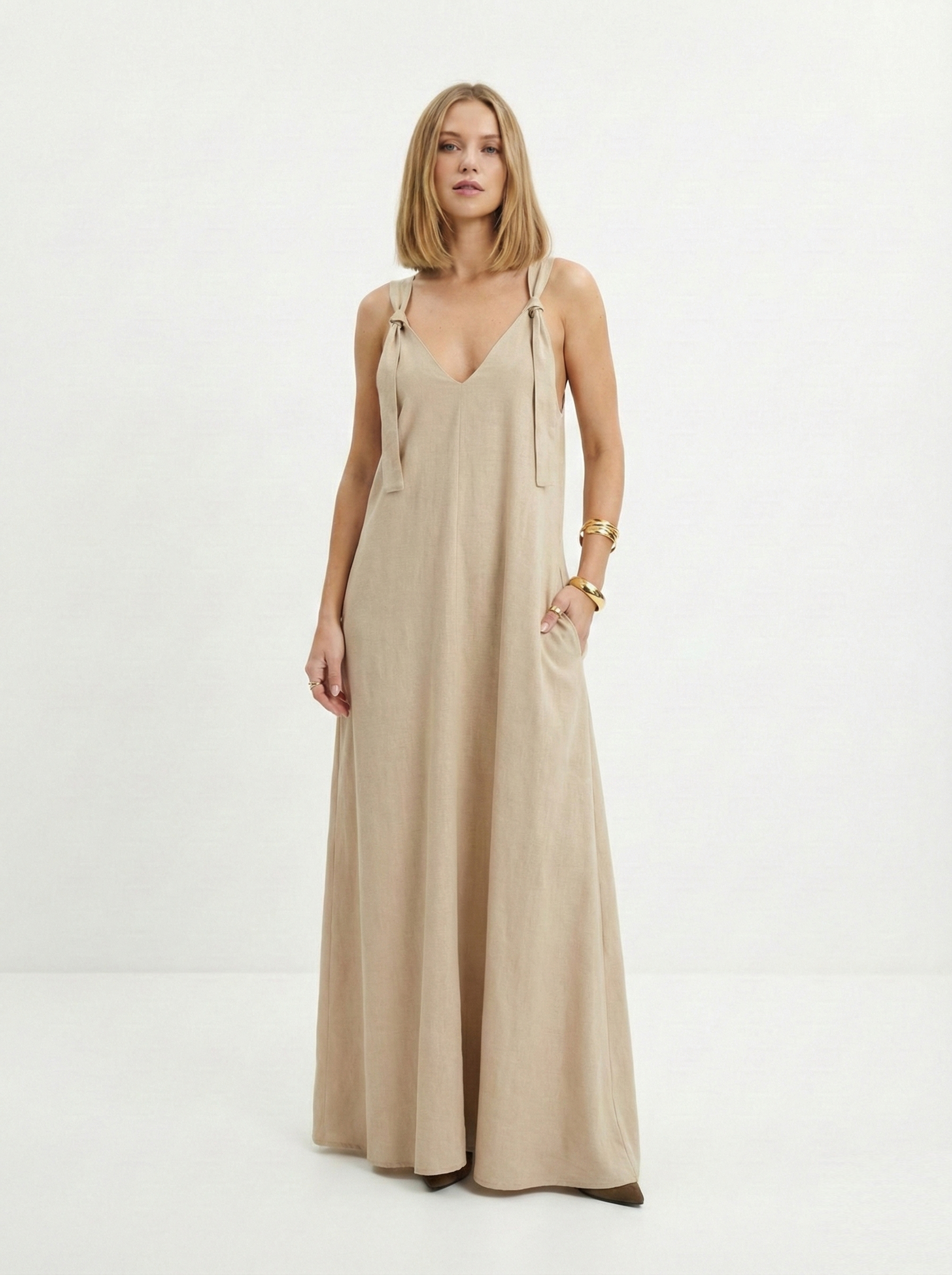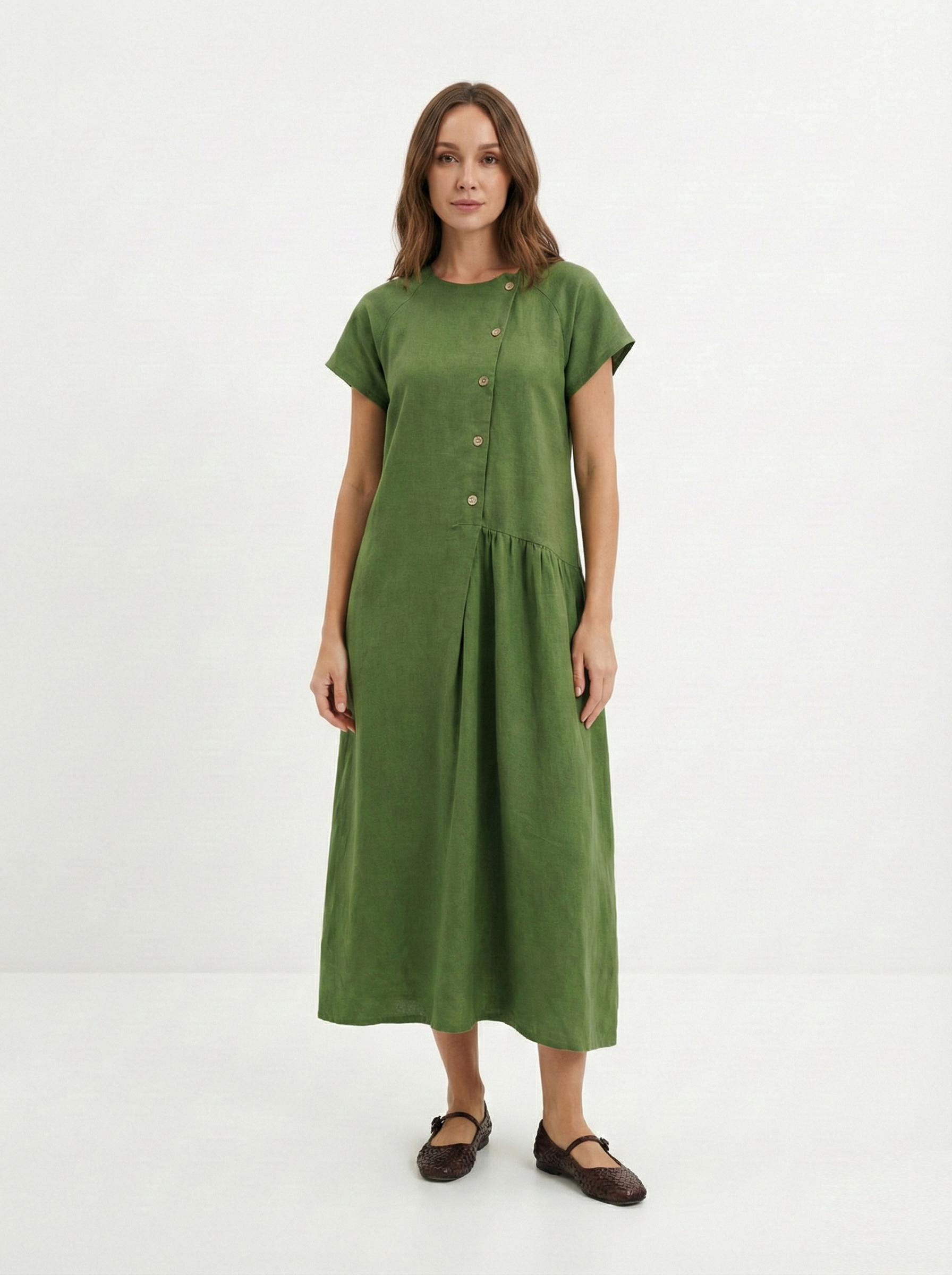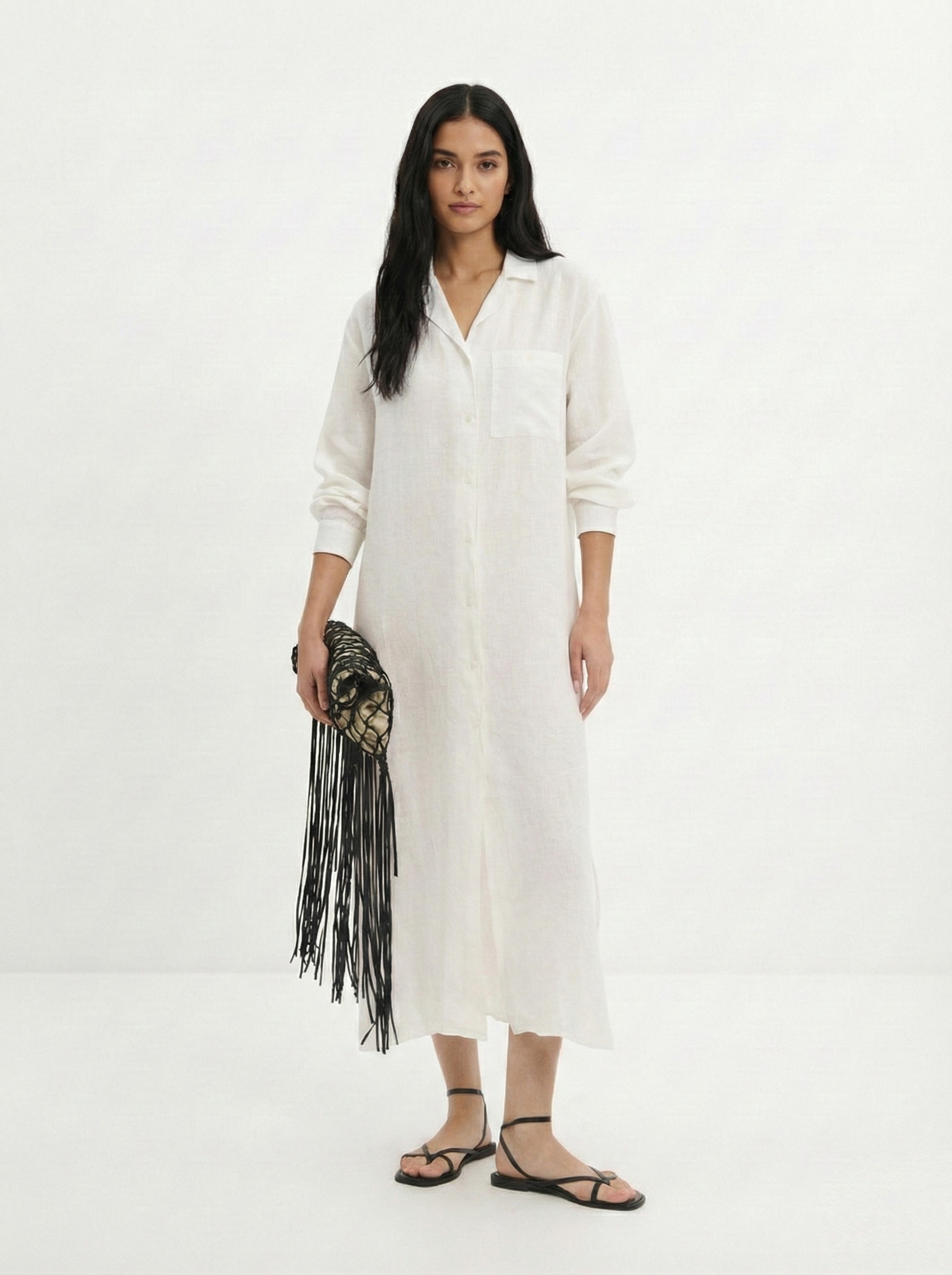 Подойдут тем, кто предпочитает простые силуэты, четкие линии и отсутствие декора. Обычно они выполняются из более плотных летних тканей — денима, хлопка, вискозы. Минималистичные модели легко вписываются в повседневный гардероб и подходят для разных ситуаций. Льняные варианты остаются универсальным выбором на лето.
