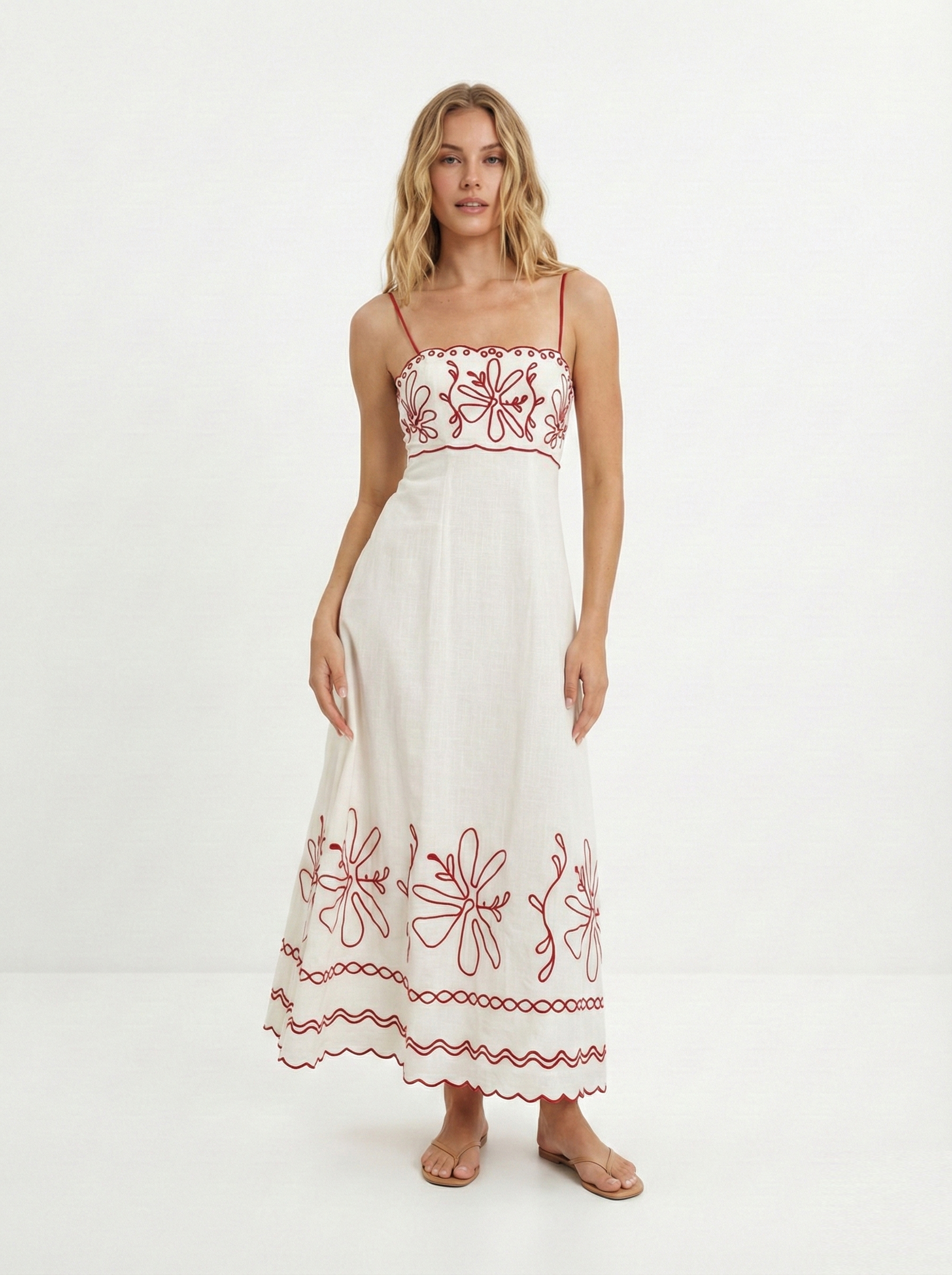 Заметно усилился интерес к так называемому «русскому стилю» — но уже без прямого цитирования народного костюма. Дизайнеры переосмысливают традиционные элементы: свободный крой, закрытые линии плеч, объемные рукава, вышивку и натуральные ткани. Вместо буквальных сарафанов появляются платья с намеком на исторический силуэт — мягкая линия талии, длина миди или макси, хлопок и лен, растительные орнаменты.