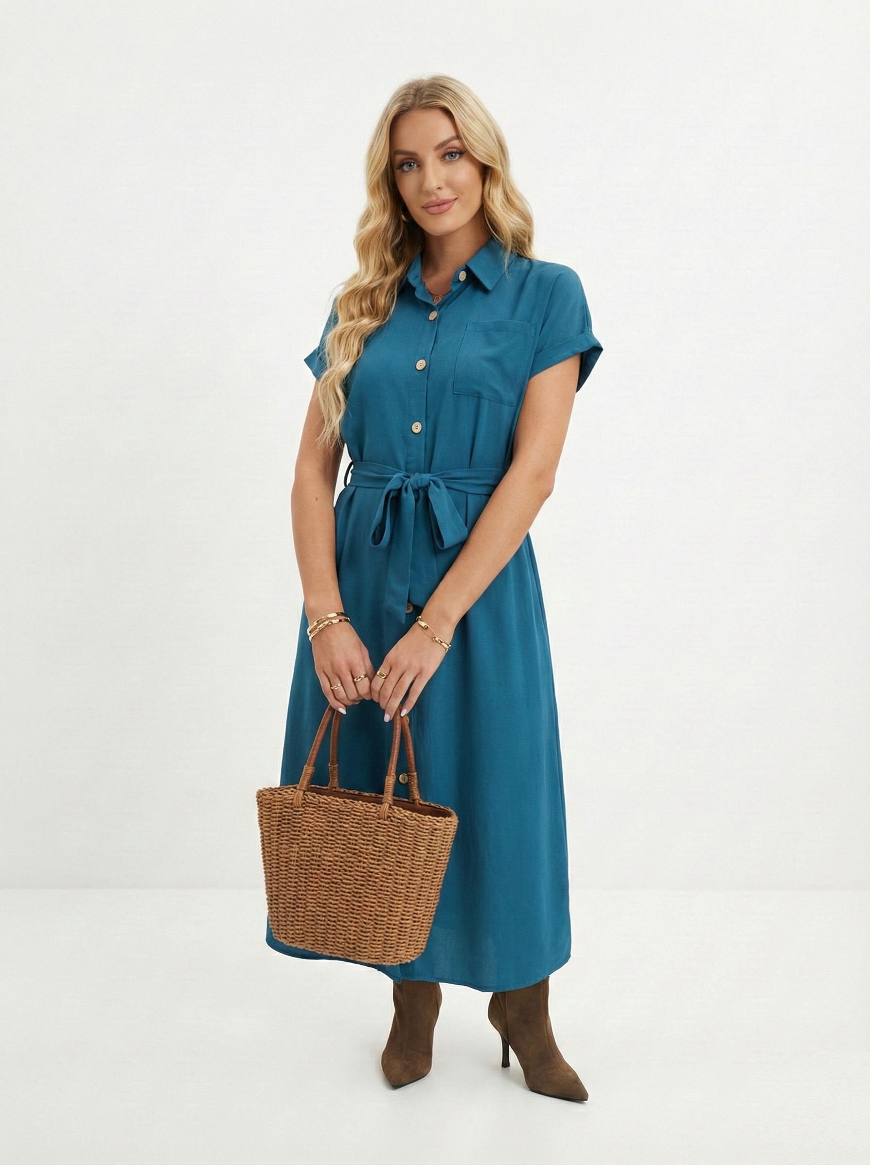 Этот вариант летнего платья по-прежнему популярен. Девушкам плюс сайз лучше подбирать модели свободного кроя или оверсайз длины макси или миди. В них комфортно даже в летний зной, если правильно подобрана ткань: хлопок, лен, батист. Летнее платье-рубашка встречалось на подиумах весны-лета 2026, что говорит об актуальности кроя. Этот хит помнят еще с восьмидесятых — на главной героине фильма «Ирония судьбы» (1975) — горчичное платье-рубашка. Надя надела его, чтобы встретить в нем Новый год.