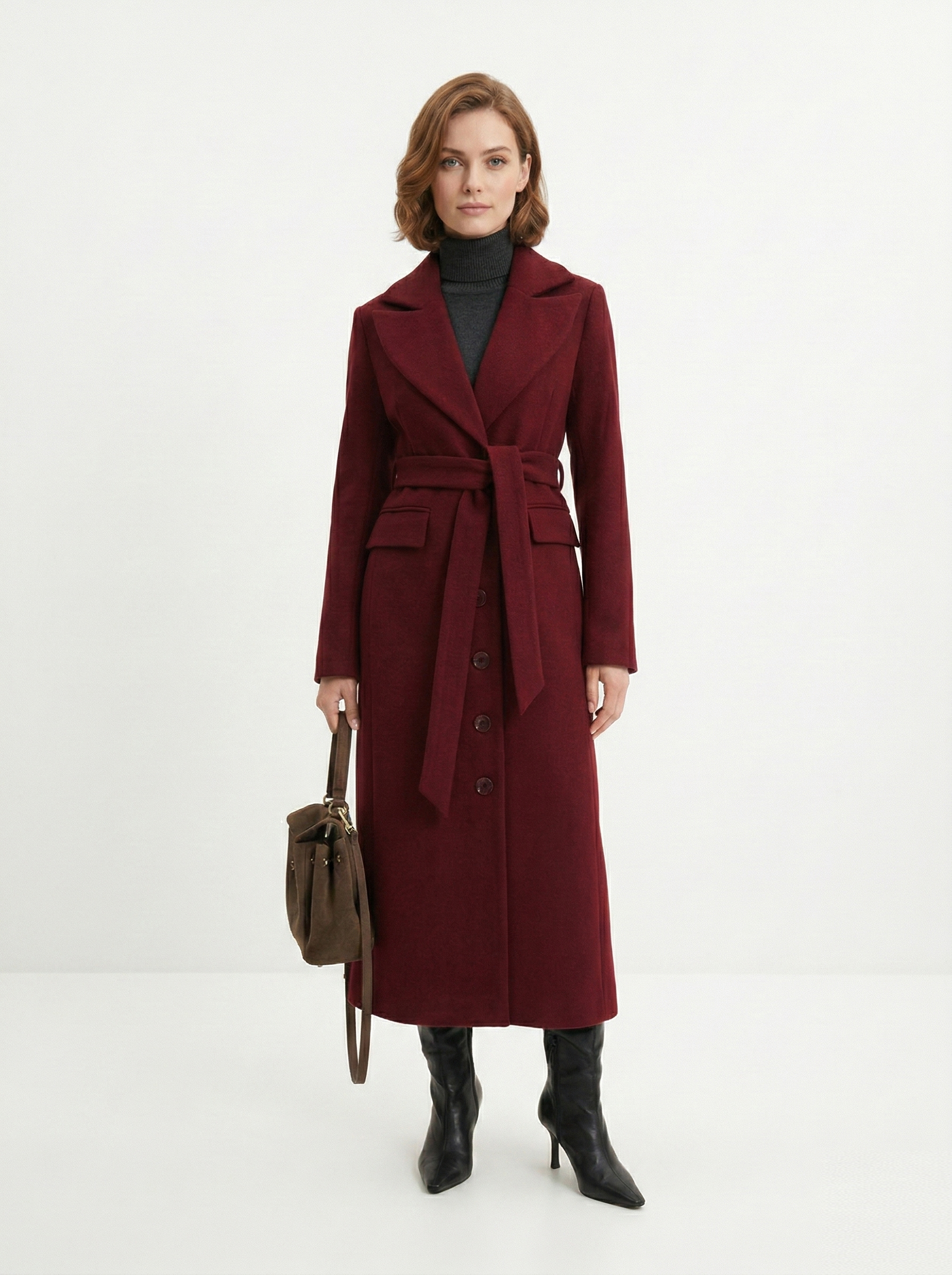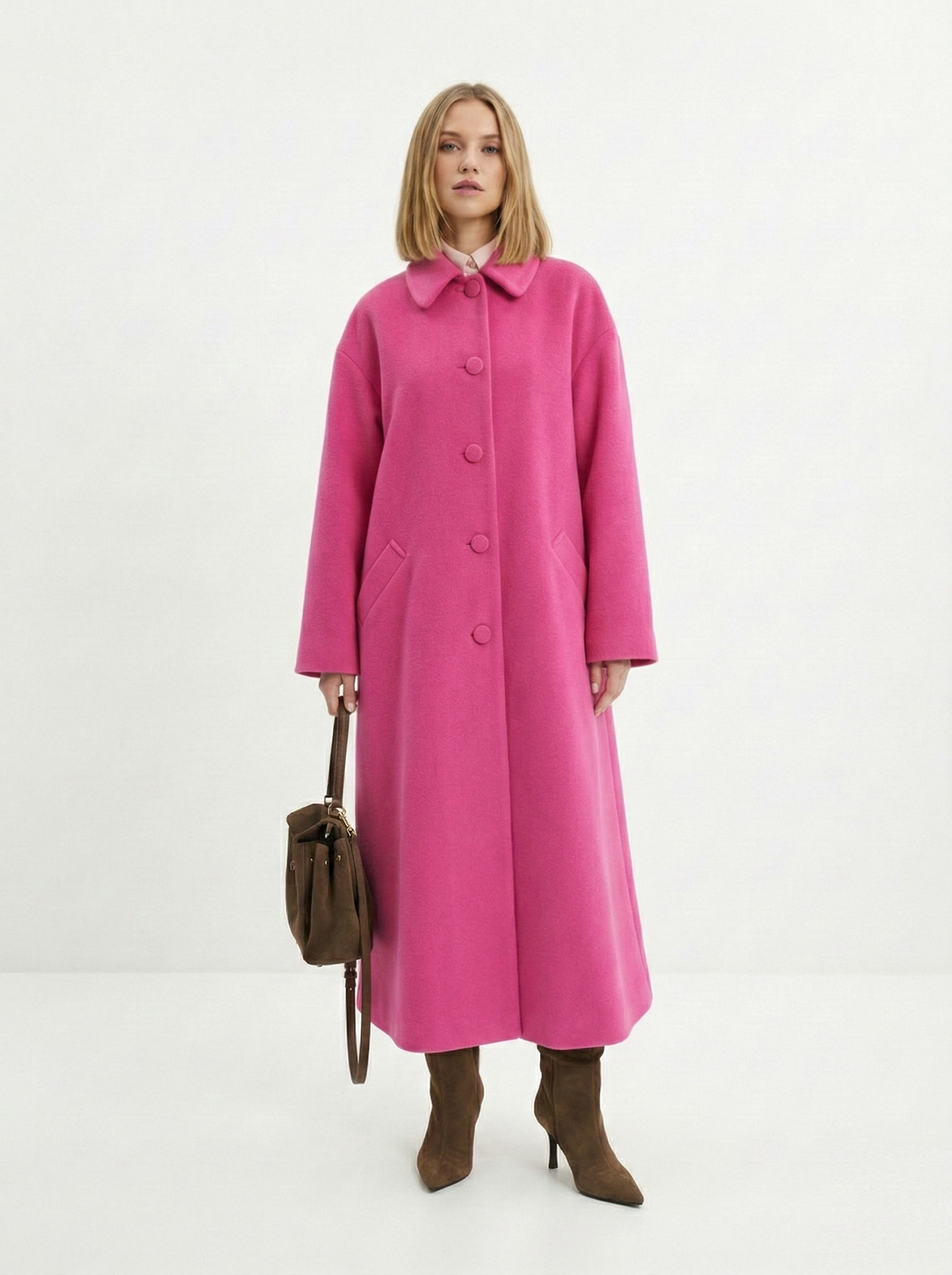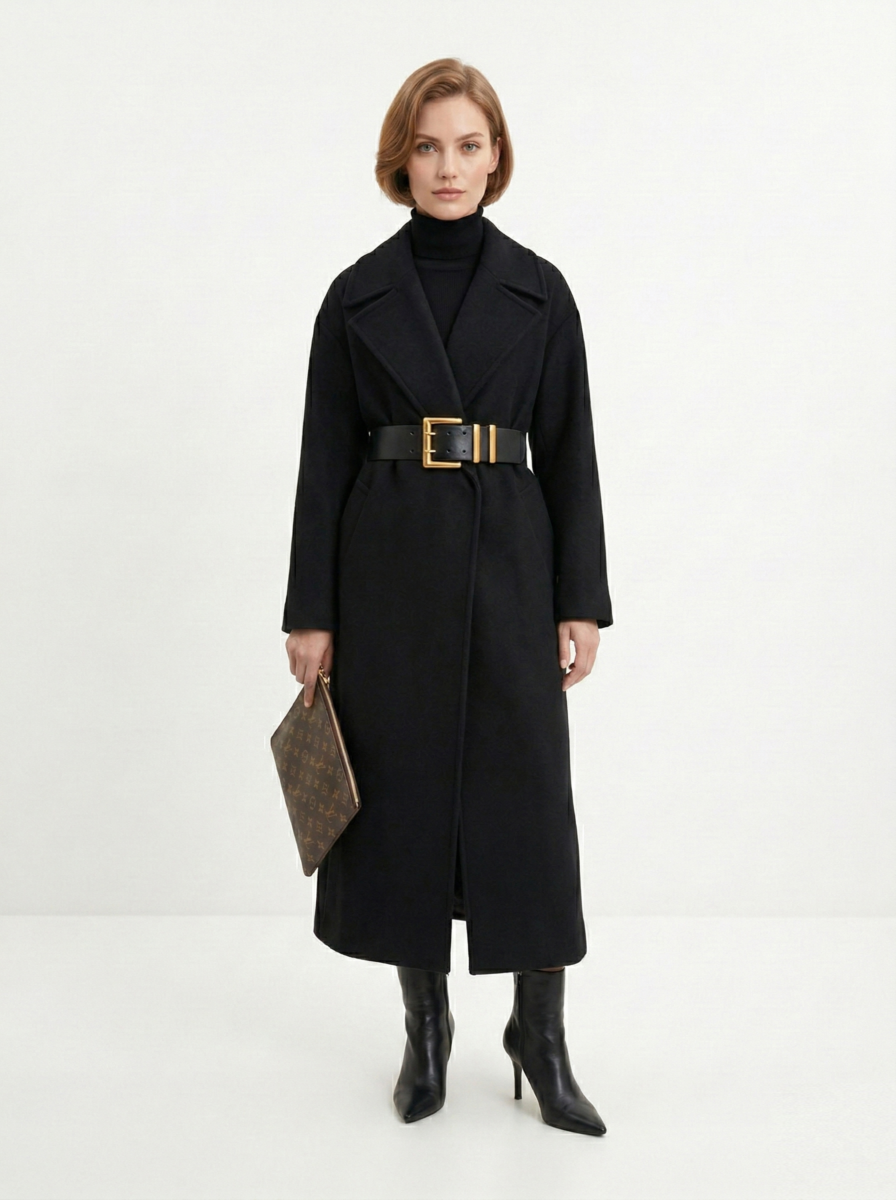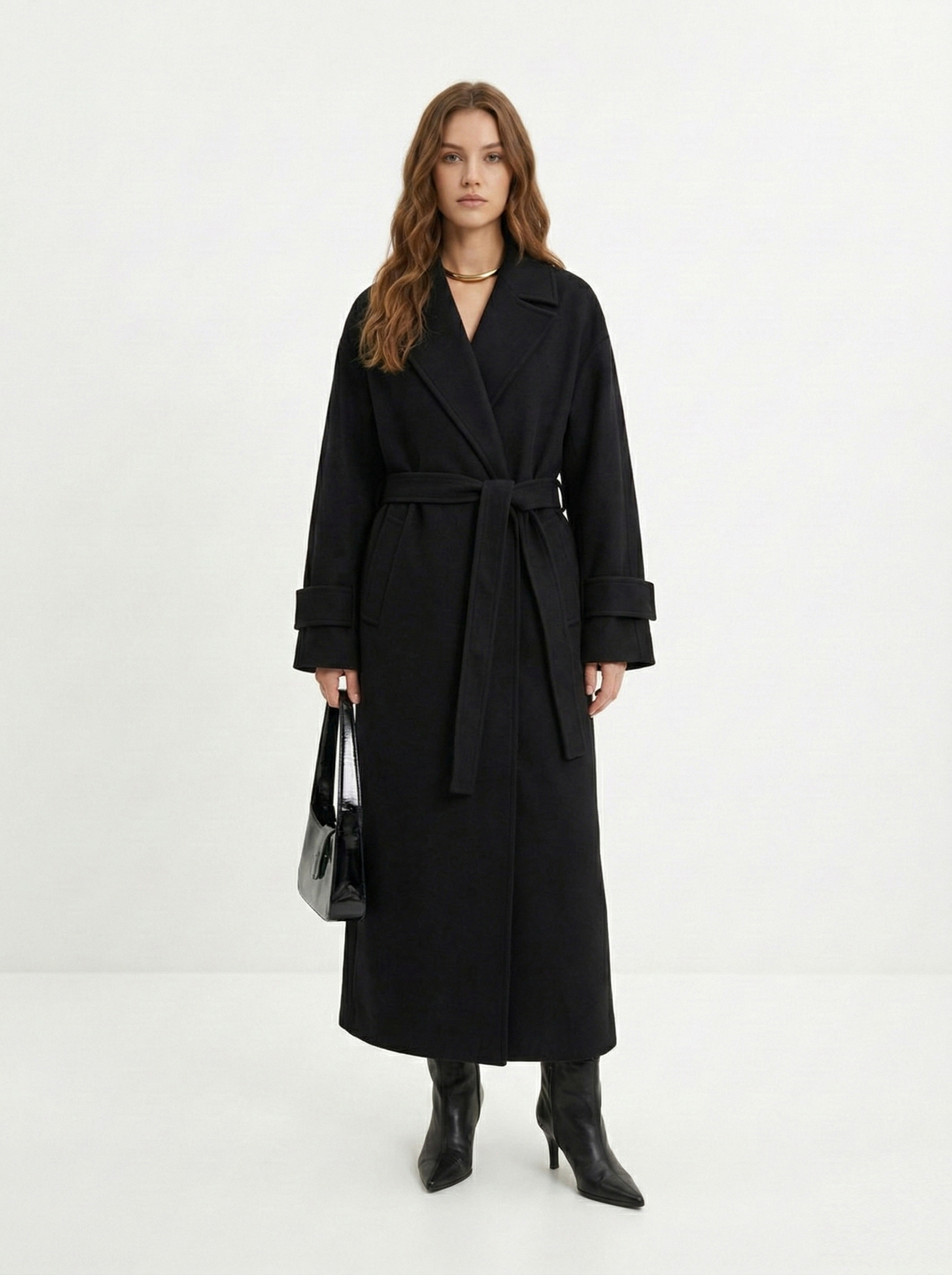 - Прямоугольник: приталенные пальто, модели с поясом. Избегайте оверсайза и акцентного верха.