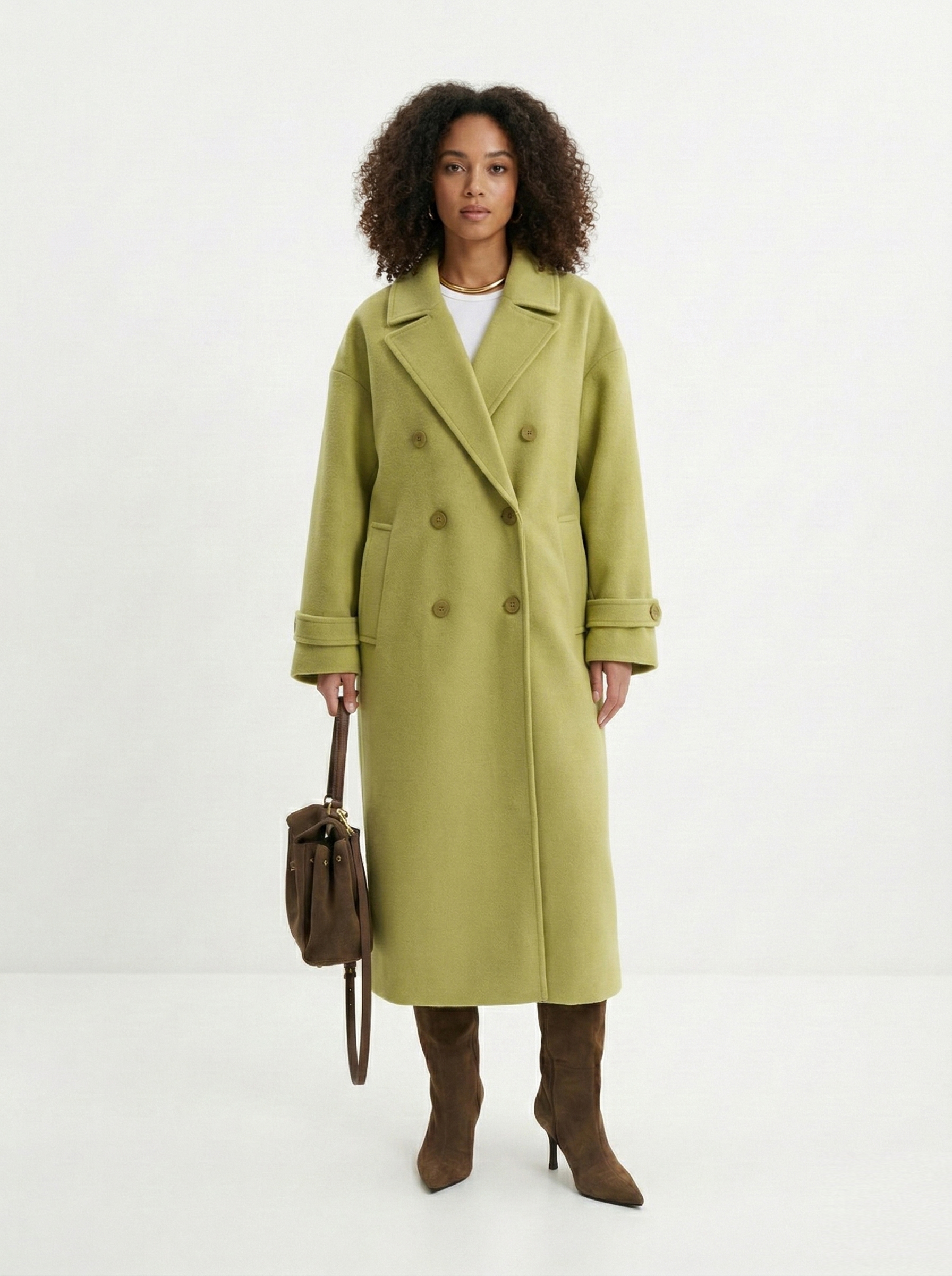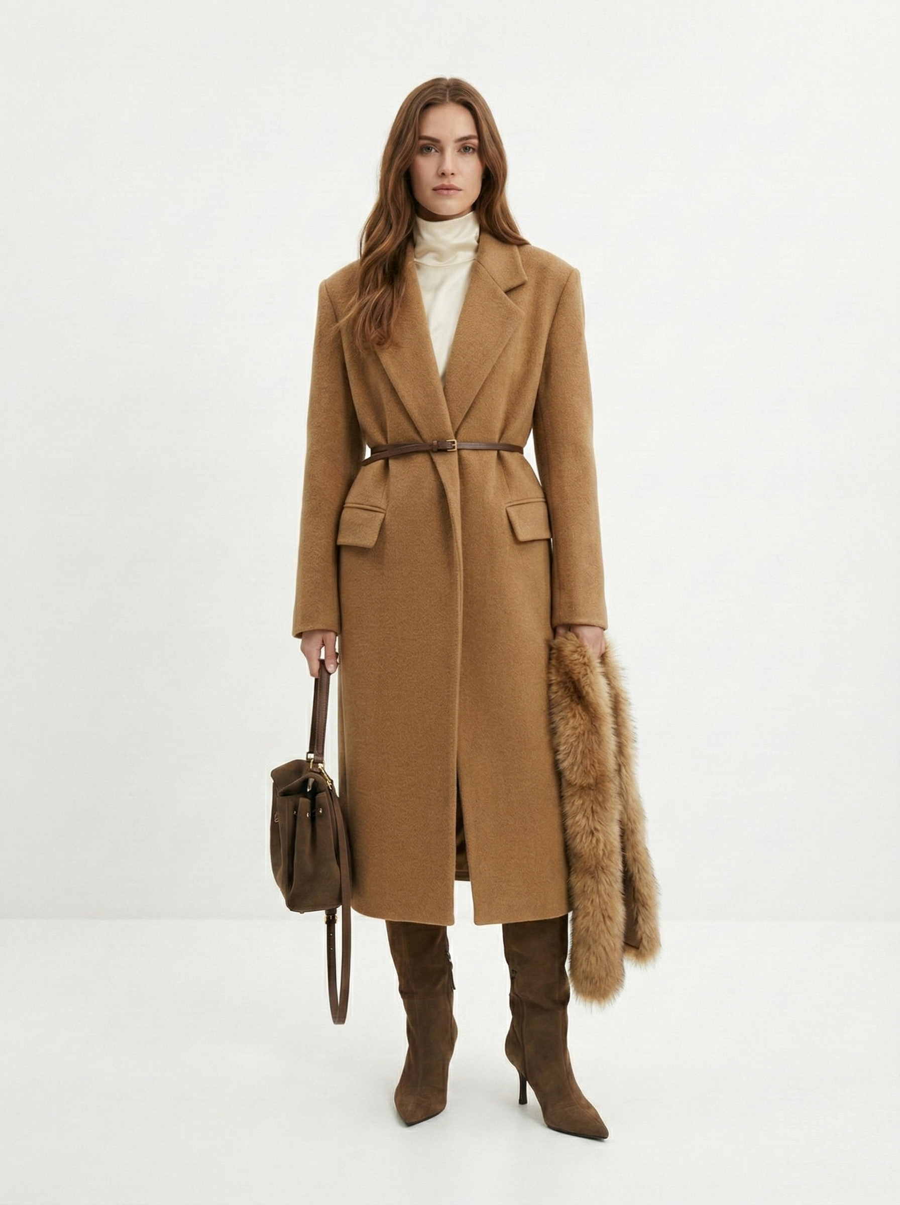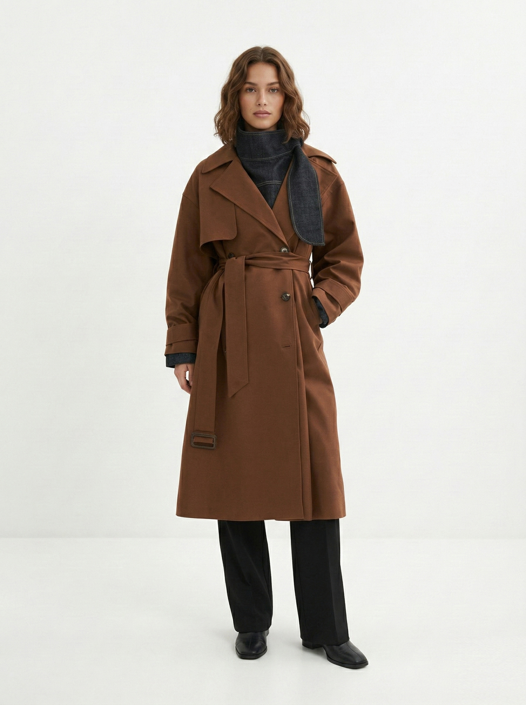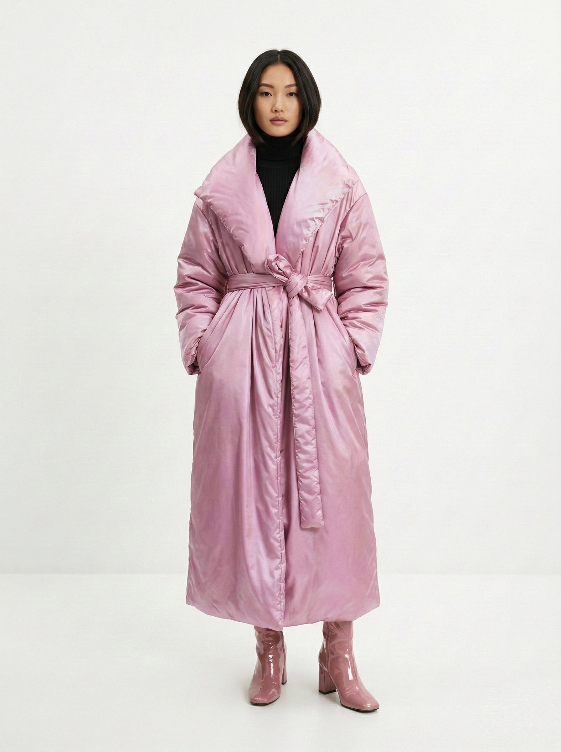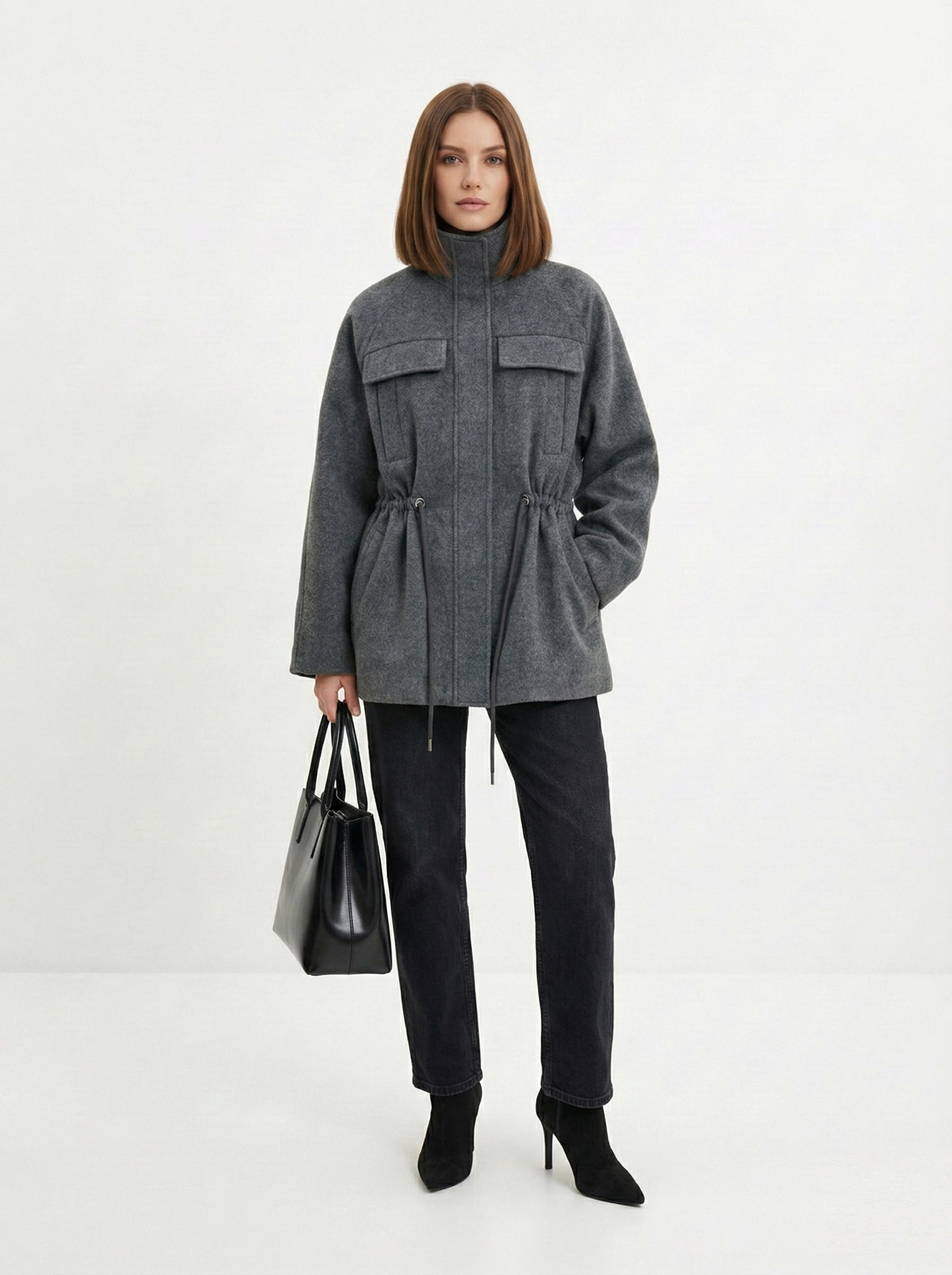 - Прямоугольник: приталенные пальто, модели с поясом. Избегайте оверсайза и акцентного верха.