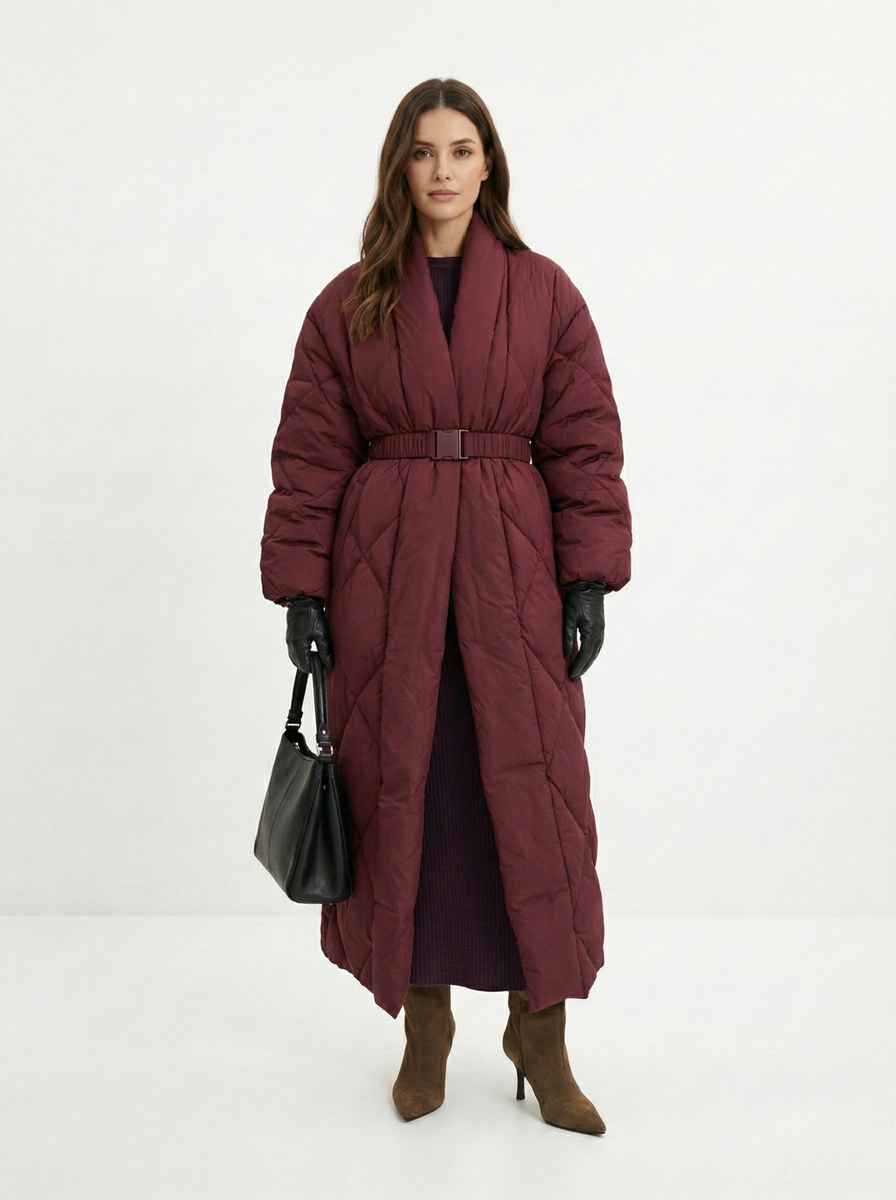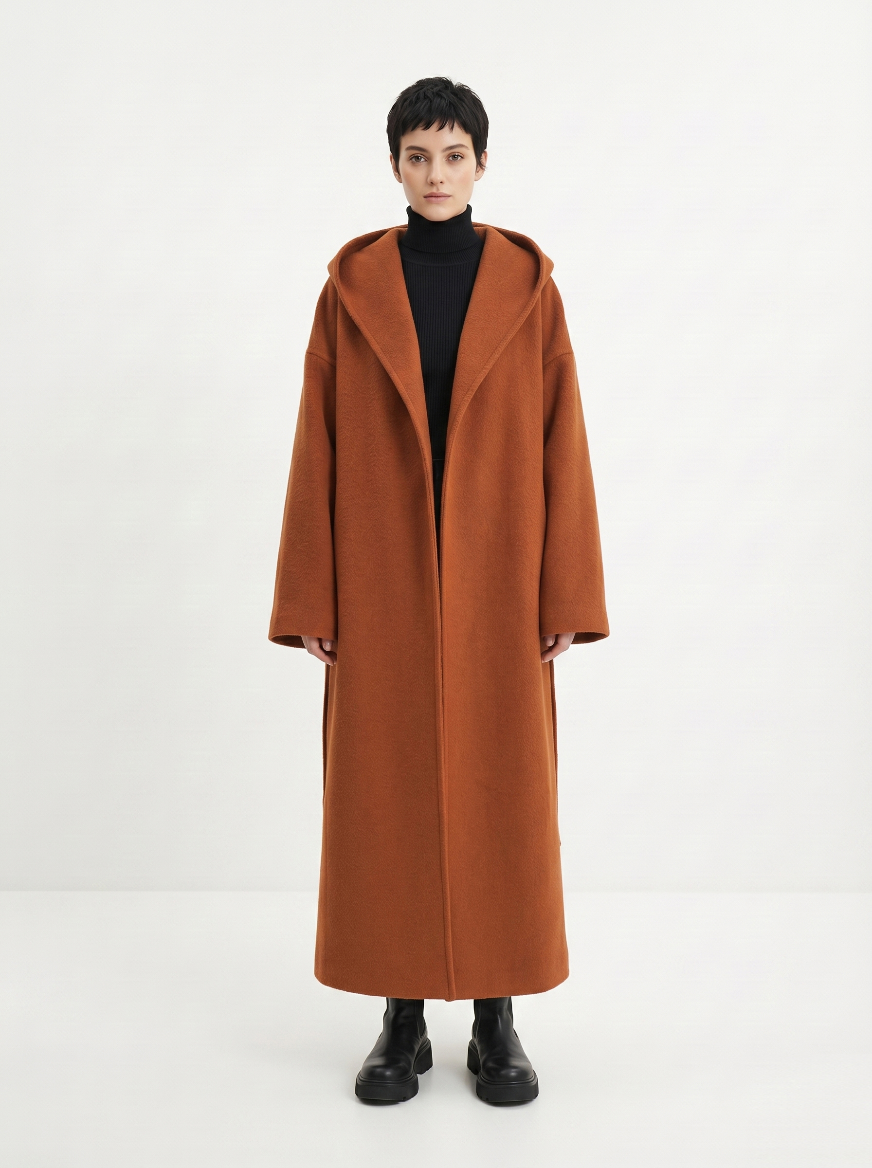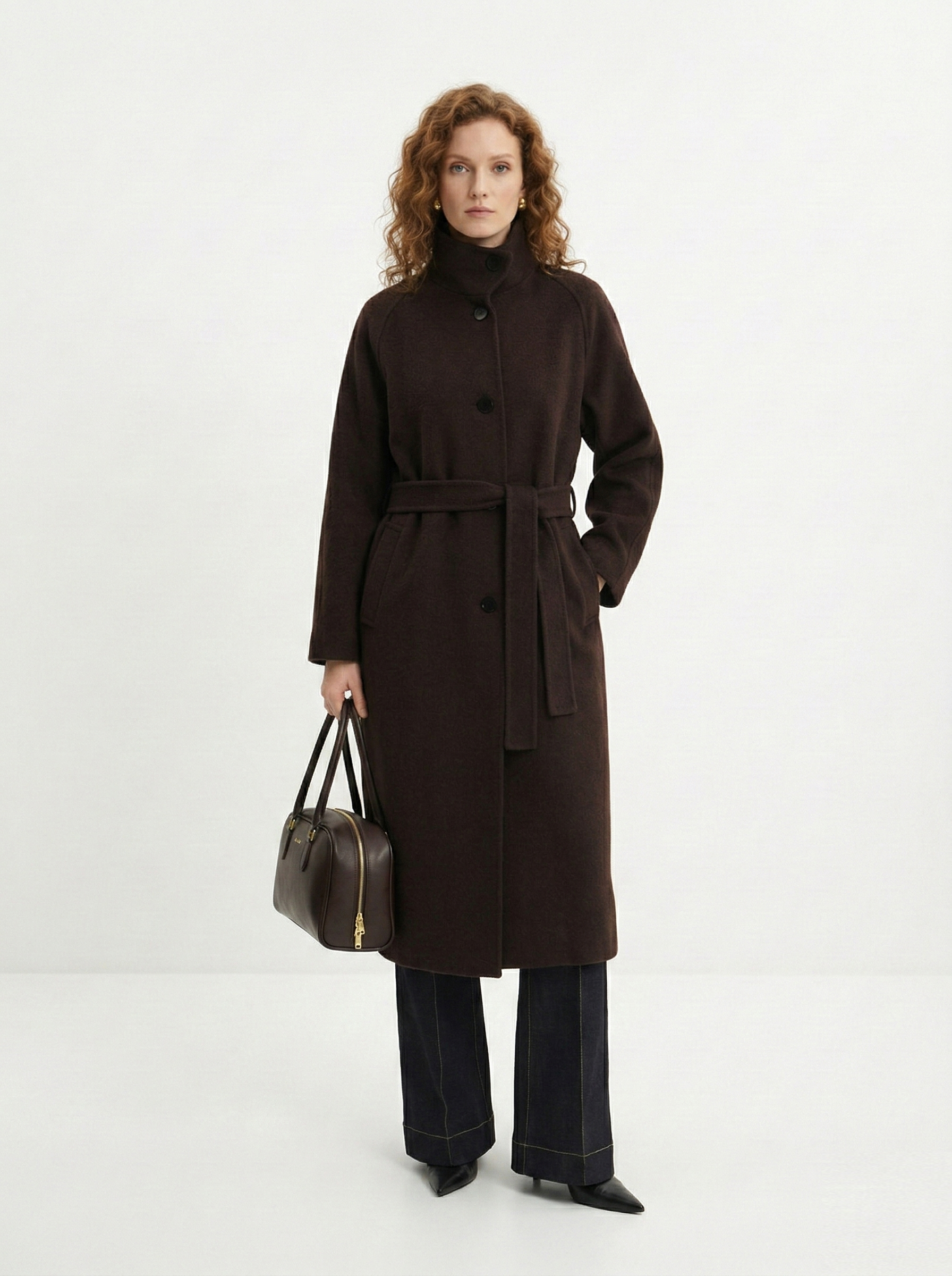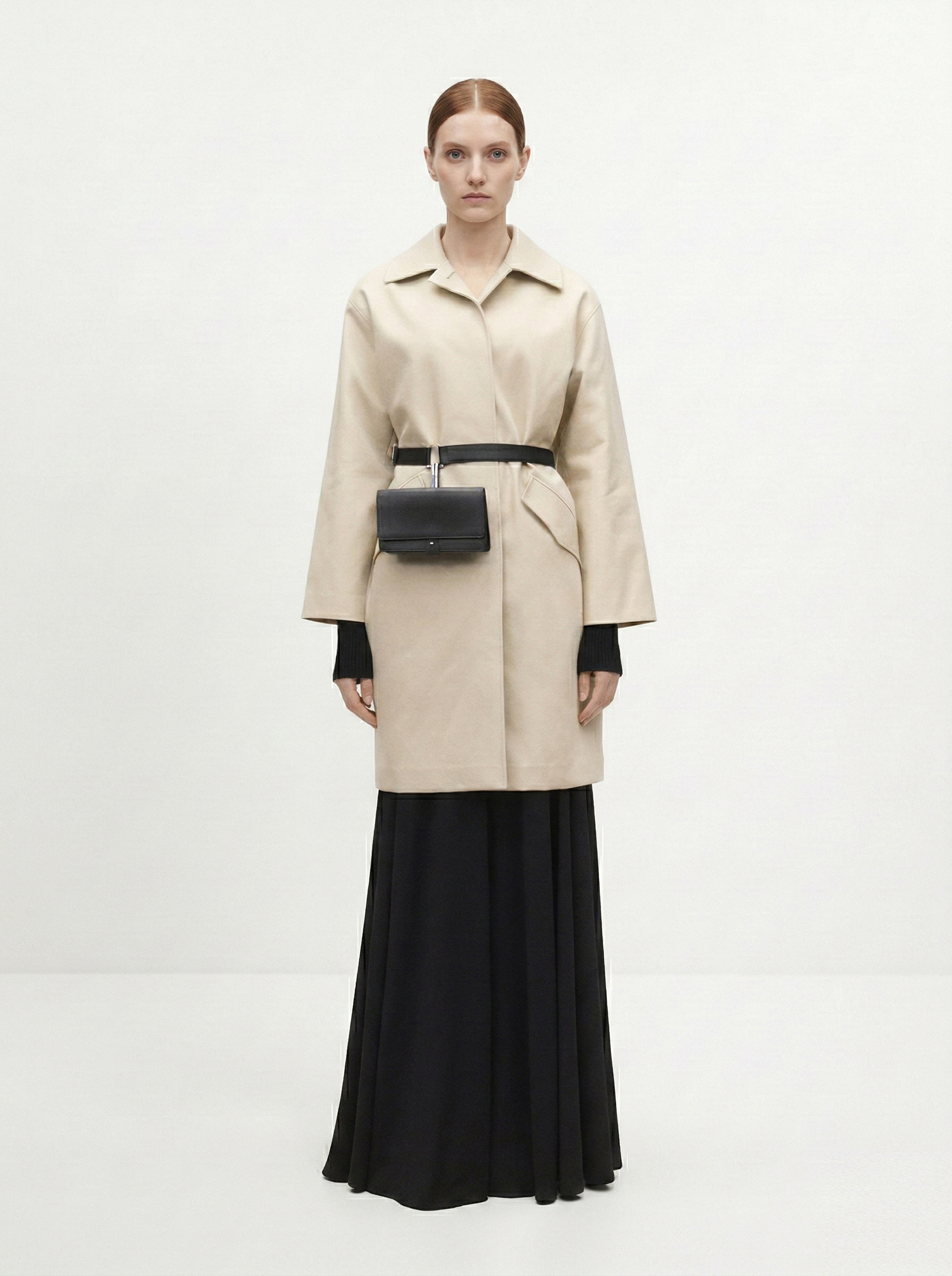 - Прямоугольник: приталенные пальто, модели с поясом. Избегайте оверсайза и акцентного верха.