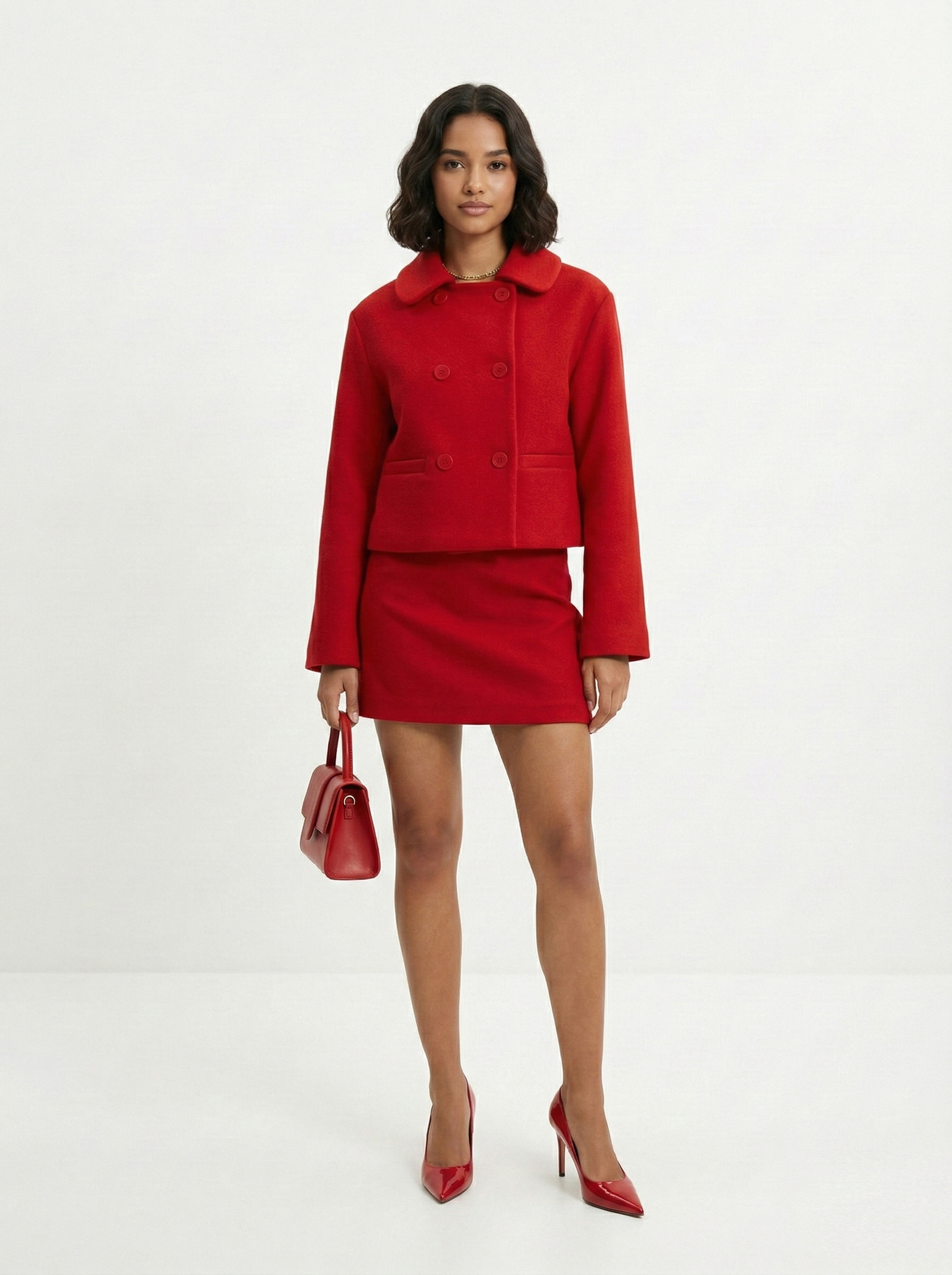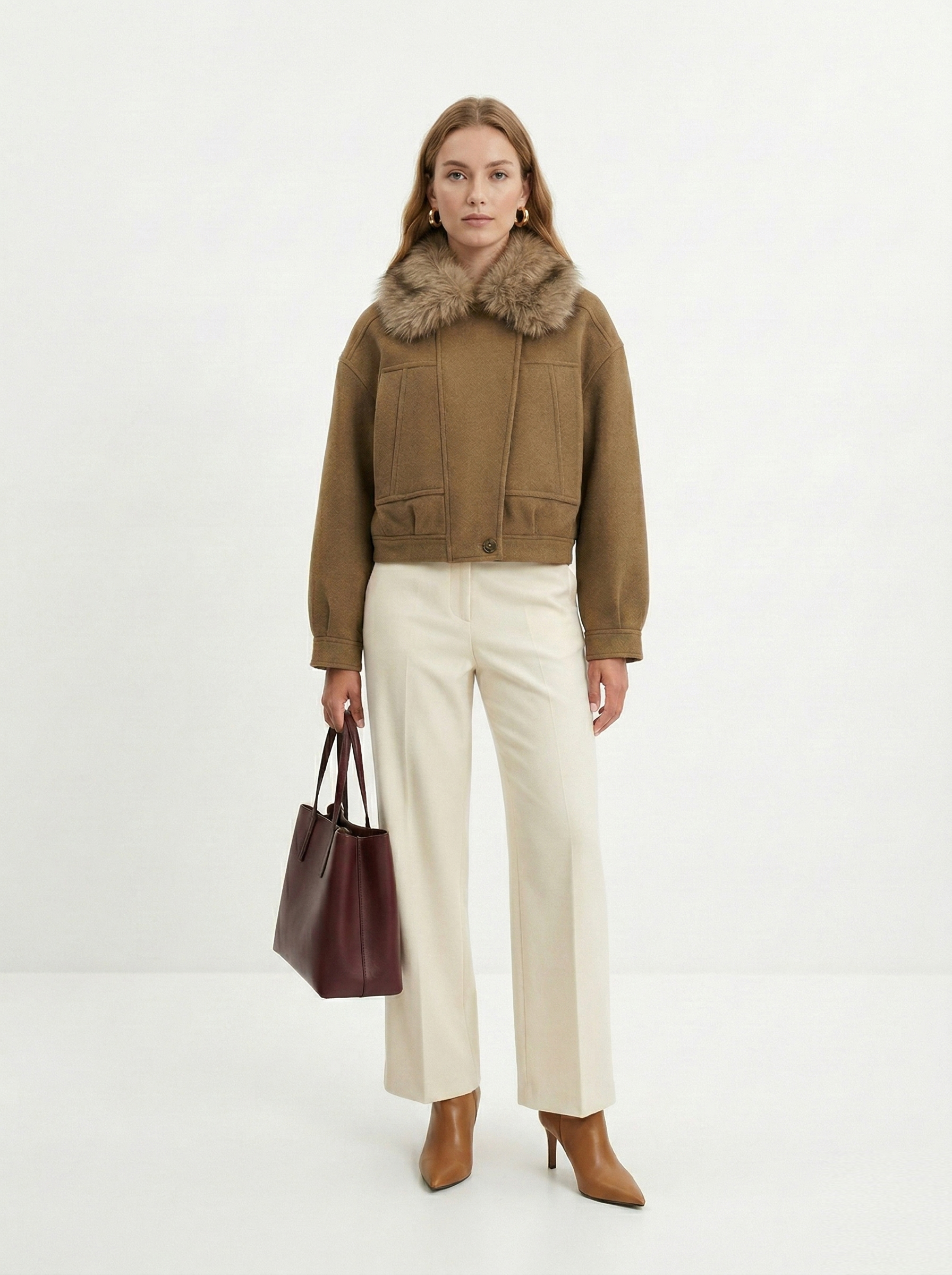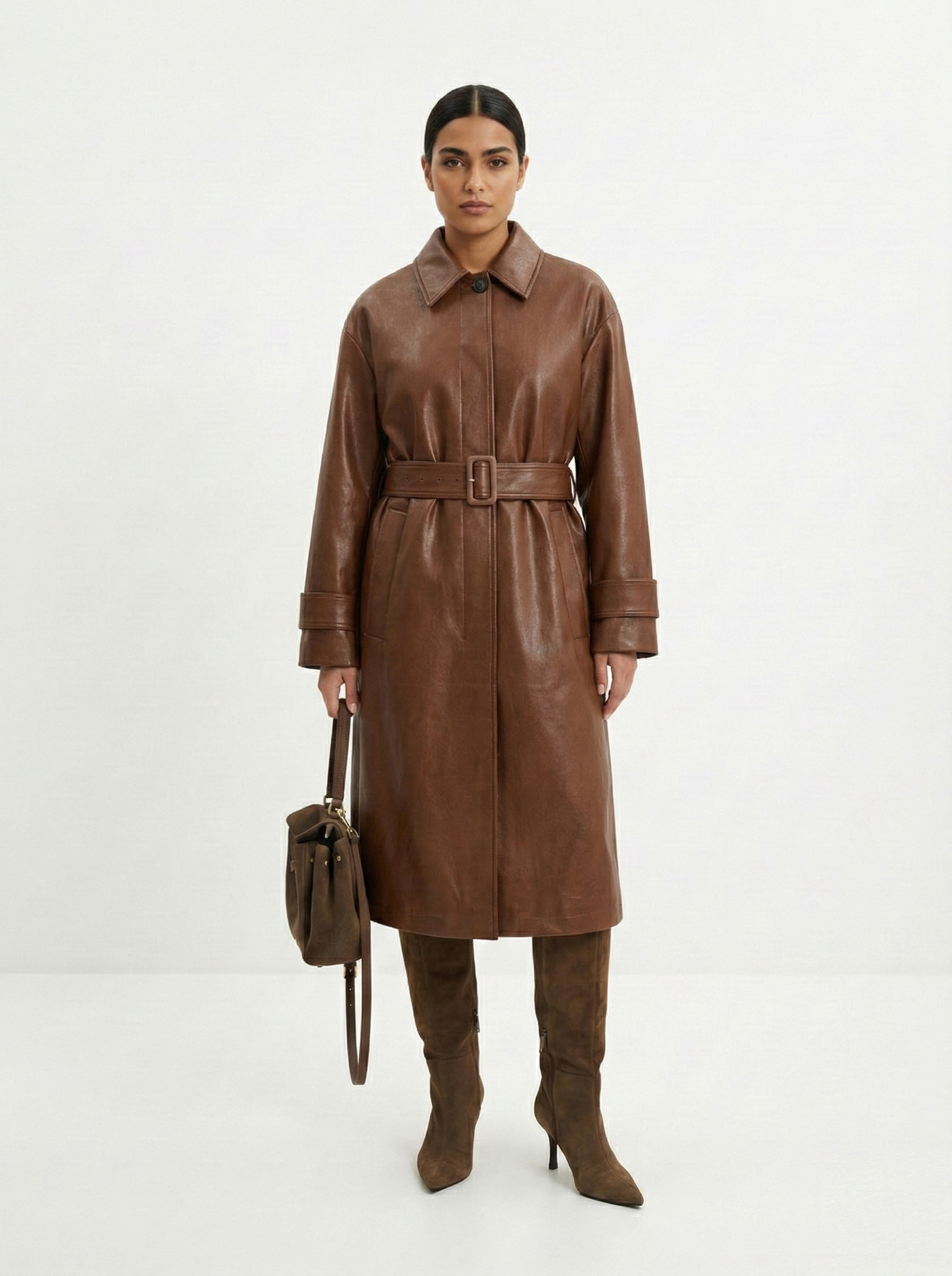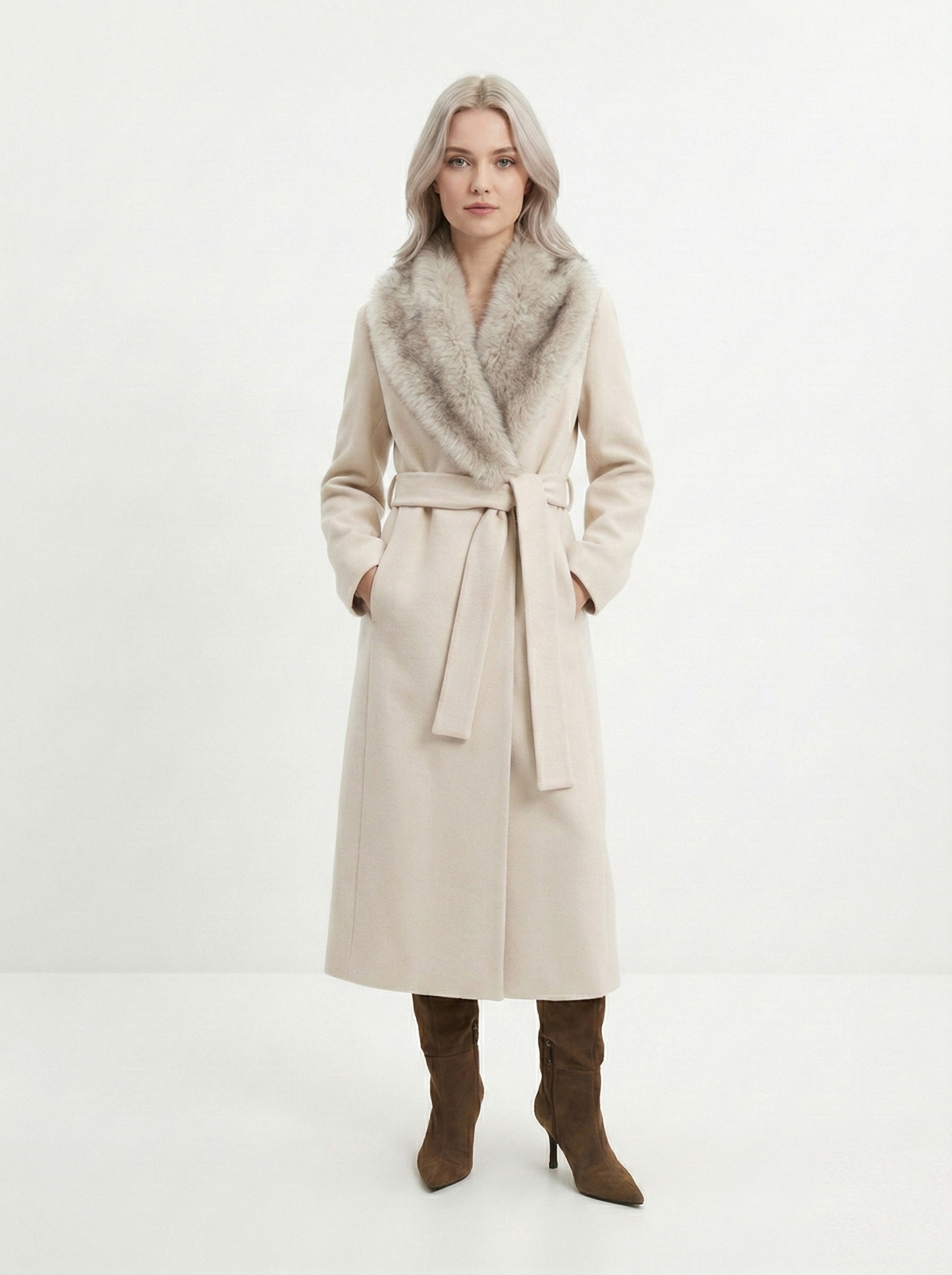 - Прямоугольник: приталенные пальто, модели с поясом. Избегайте оверсайза и акцентного верха.
