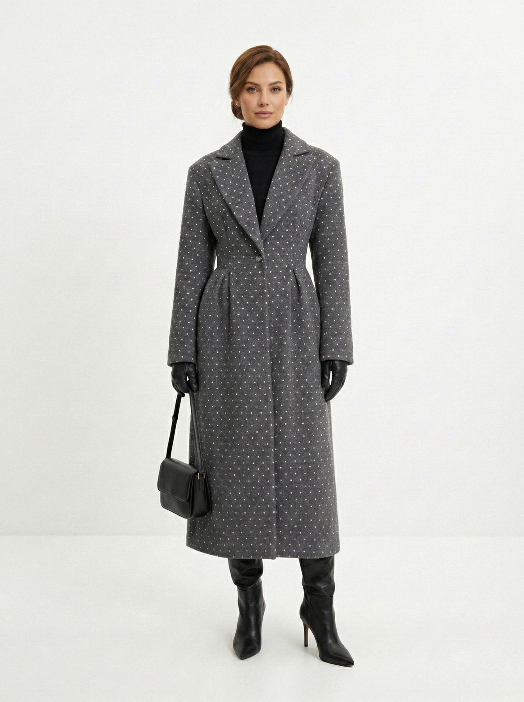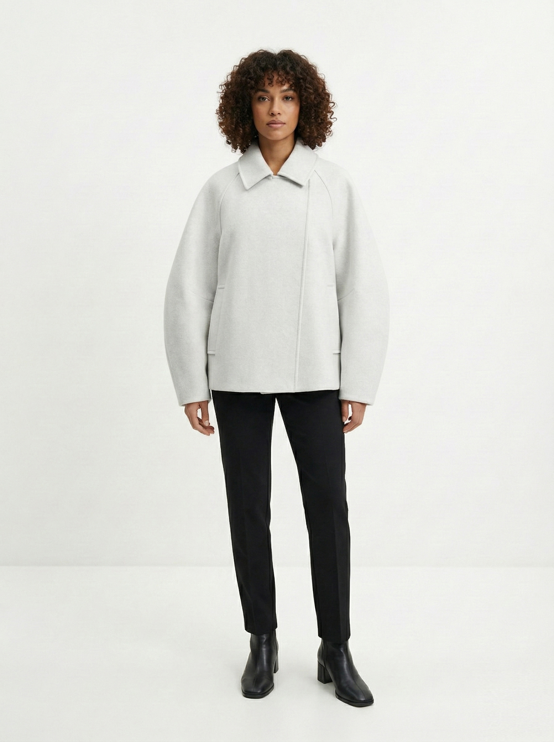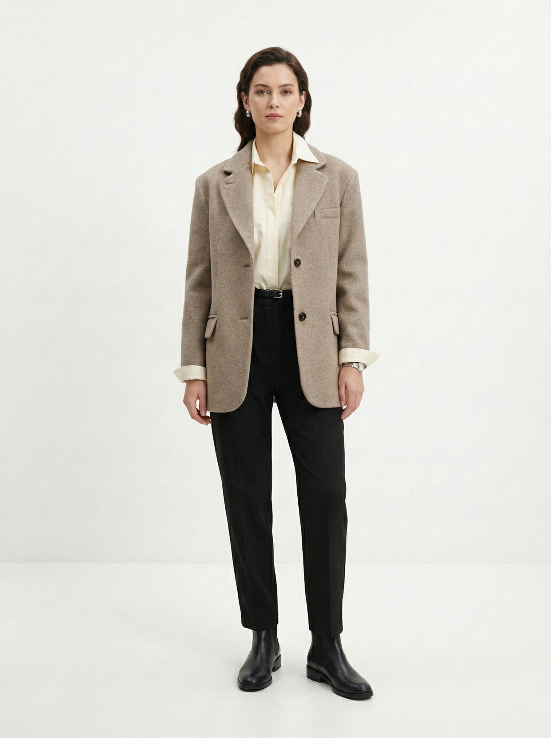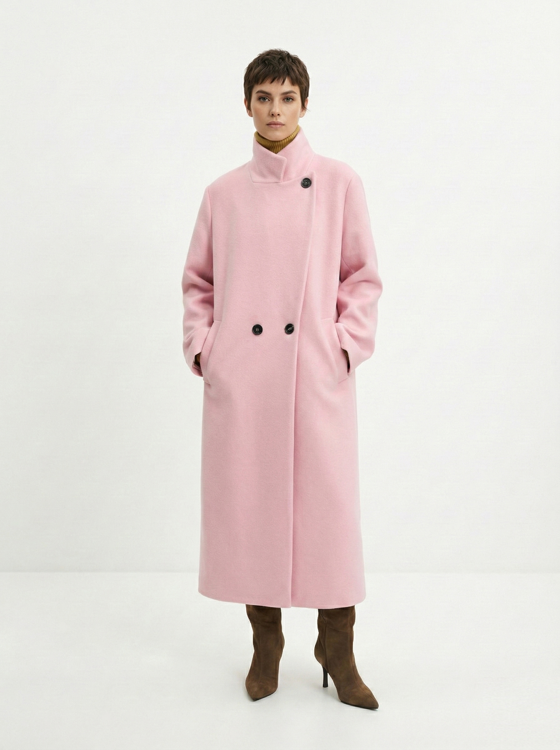 У пальто должна быть четкая линия плеча и ткань, которая держит форму. Чтобы рукава не казались короткими, их длина должна на 2-3 см закрывать ладонь. Обращайте внимание на подкладку: ткань не должна тянуть, когда вы двигаетесь или поднимаете руки. Также пальто должно сохранять пропорции фигуры для гармонии в образе.