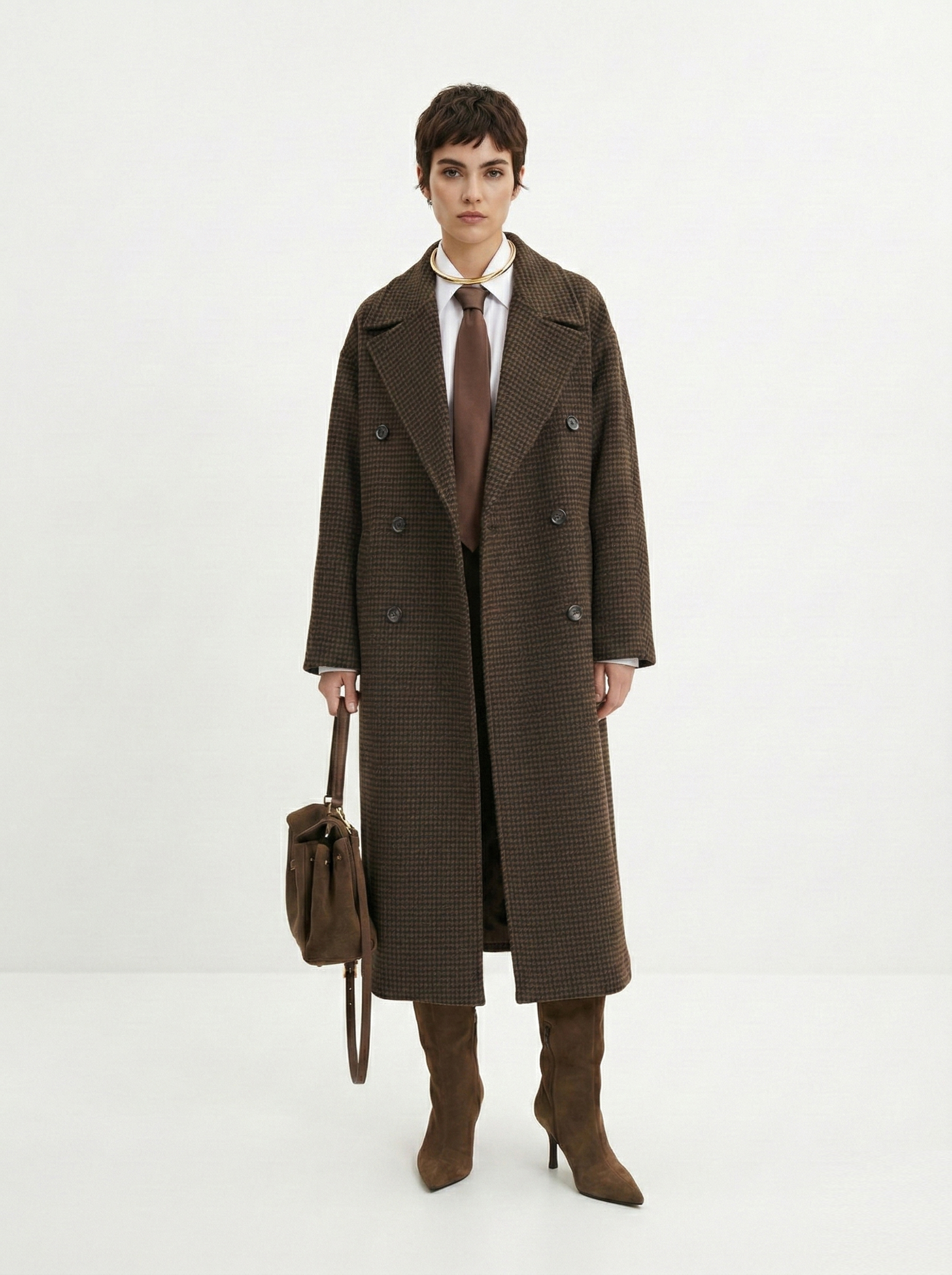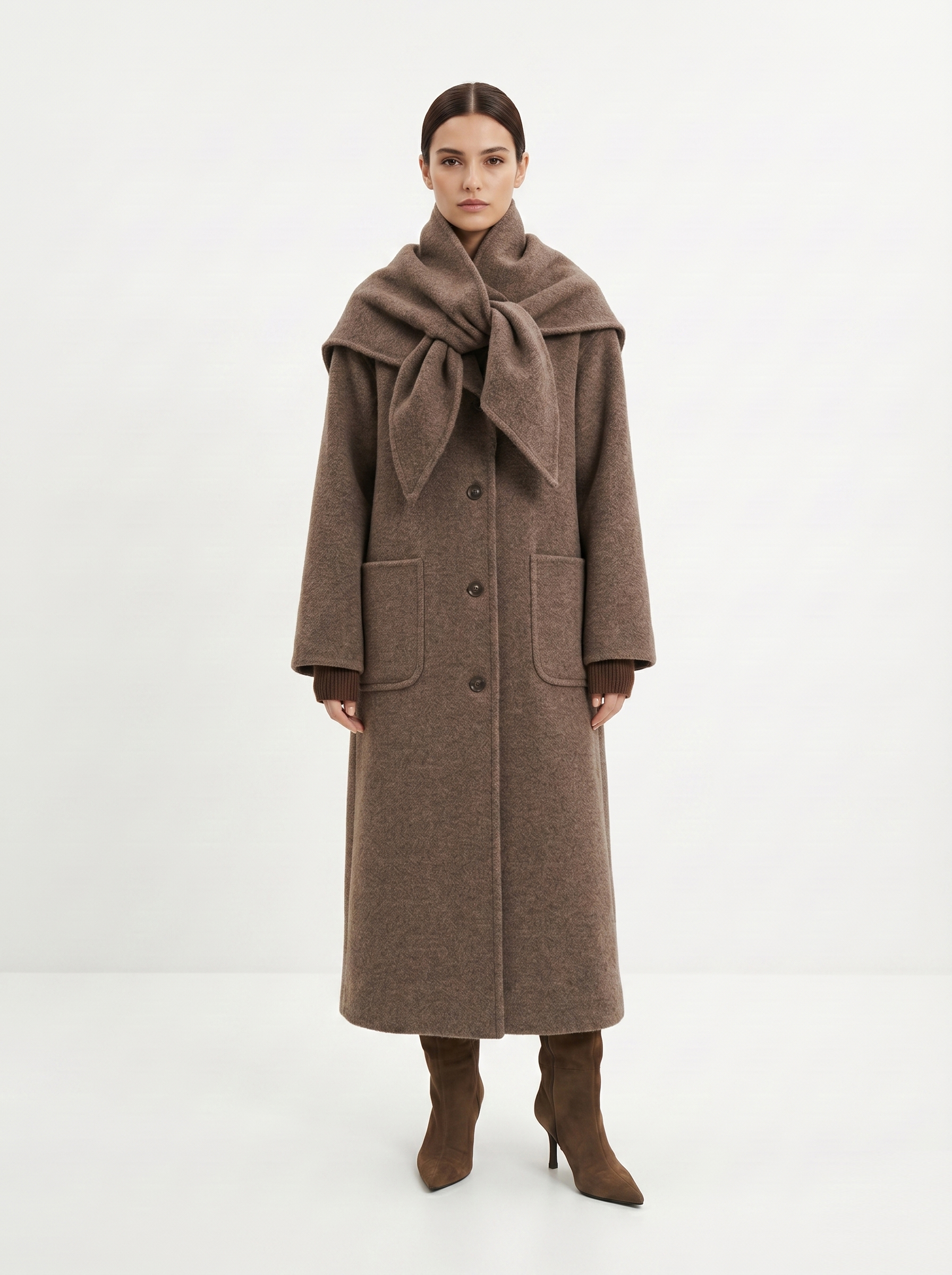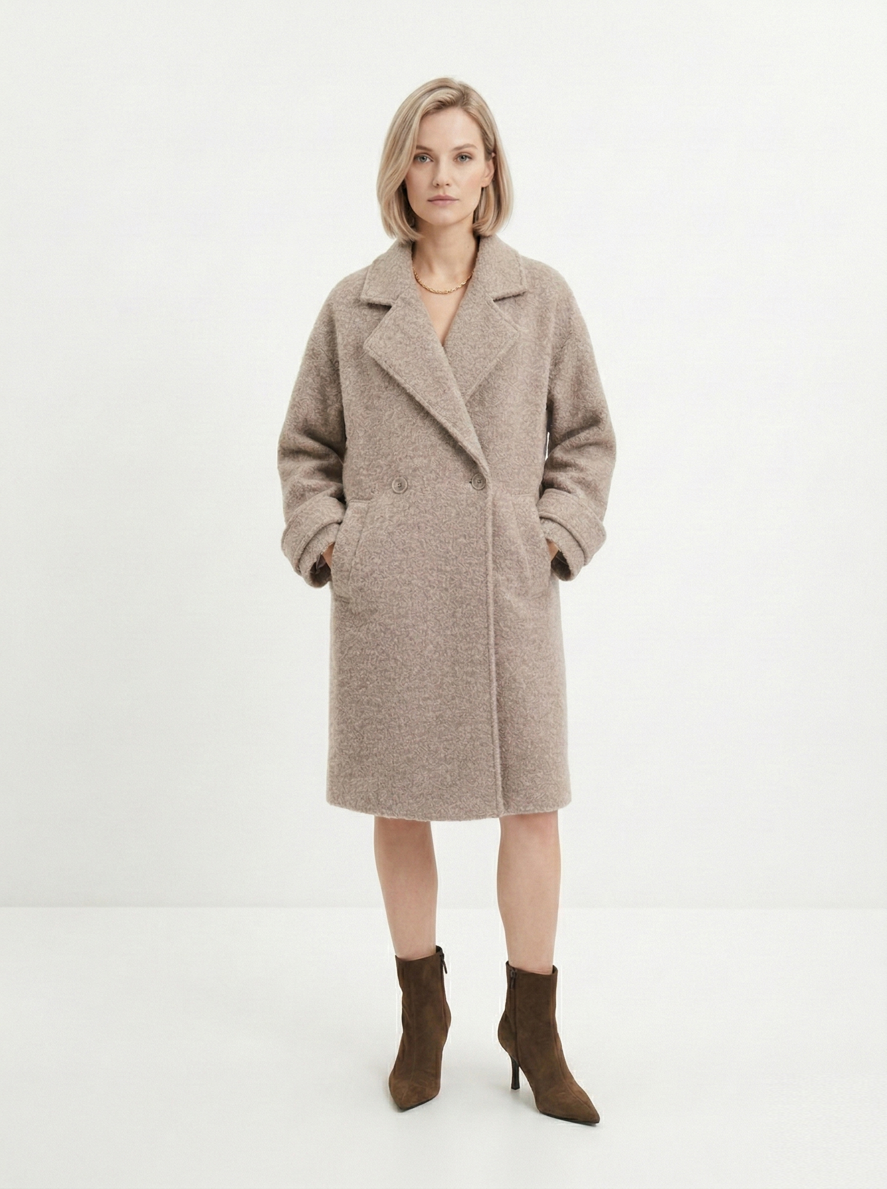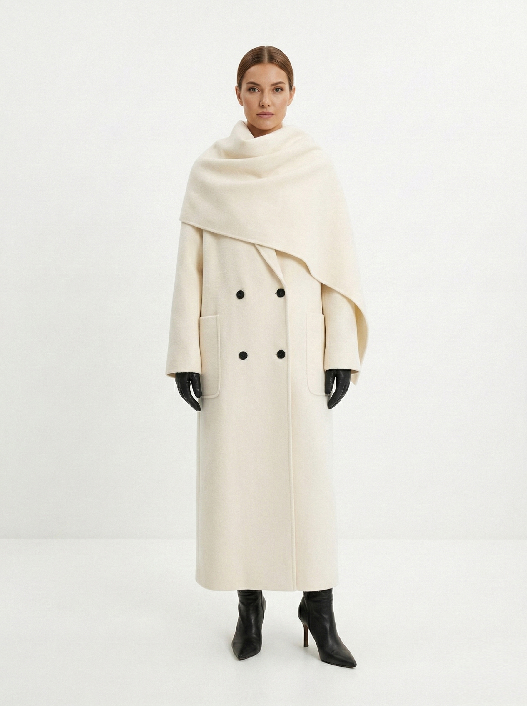 У пальто должна быть четкая линия плеча и ткань, которая держит форму. Чтобы рукава не казались короткими, их длина должна на 2-3 см закрывать ладонь. Обращайте внимание на подкладку: ткань не должна тянуть, когда вы двигаетесь или поднимаете руки. Также пальто должно сохранять пропорции фигуры для гармонии в образе.