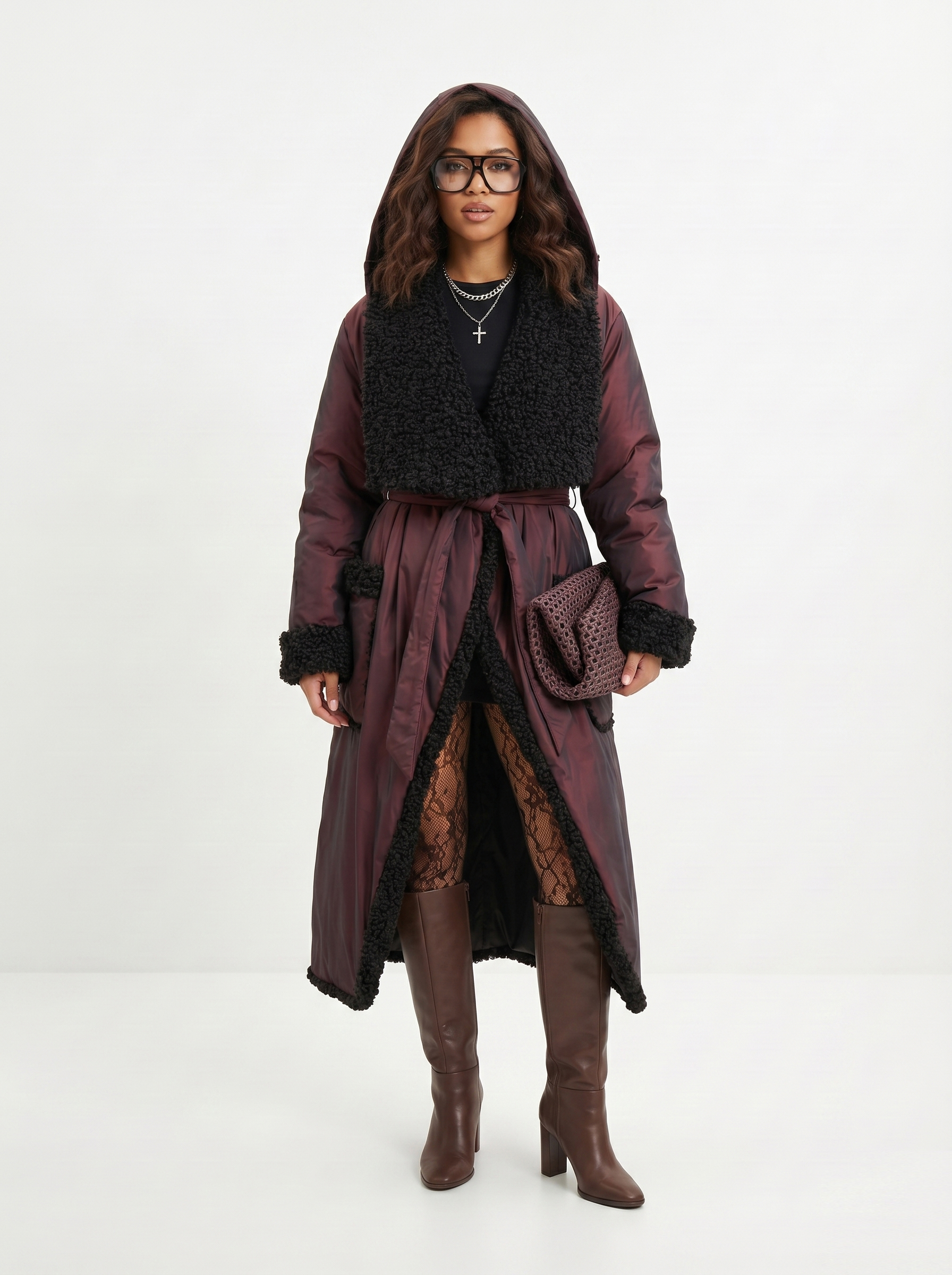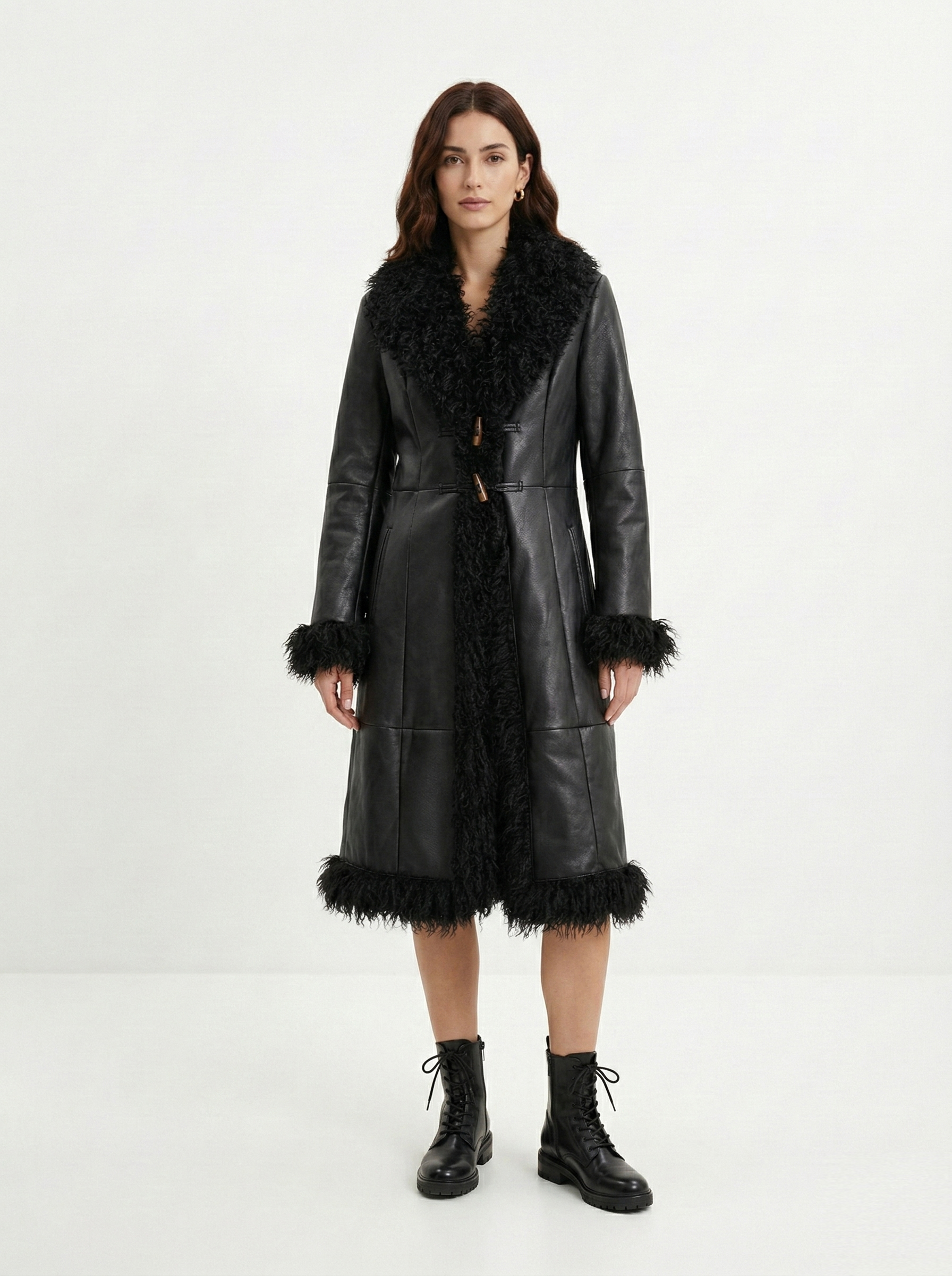 А это уже дань моде на ретро. Такая тенденция прослеживается в моде по всему миру, однако в странах СНГ в сети завирусилась эстетика 90-х. Девушки носят пальто с меховыми рукавами и воротником, сочетая их с остроносыми сапогами, золотыми серьгами и красной помадой. Получается дерзкий и актуальный образ. Выбор материалов огромен — от классического драпа до кожи и замши.
