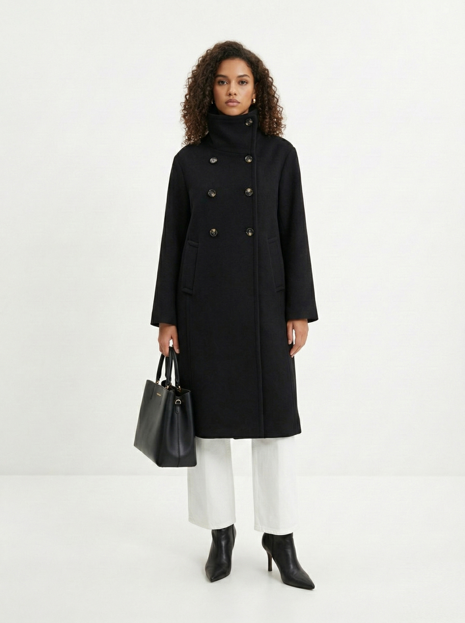 Женское пальто с воротником-стойкой