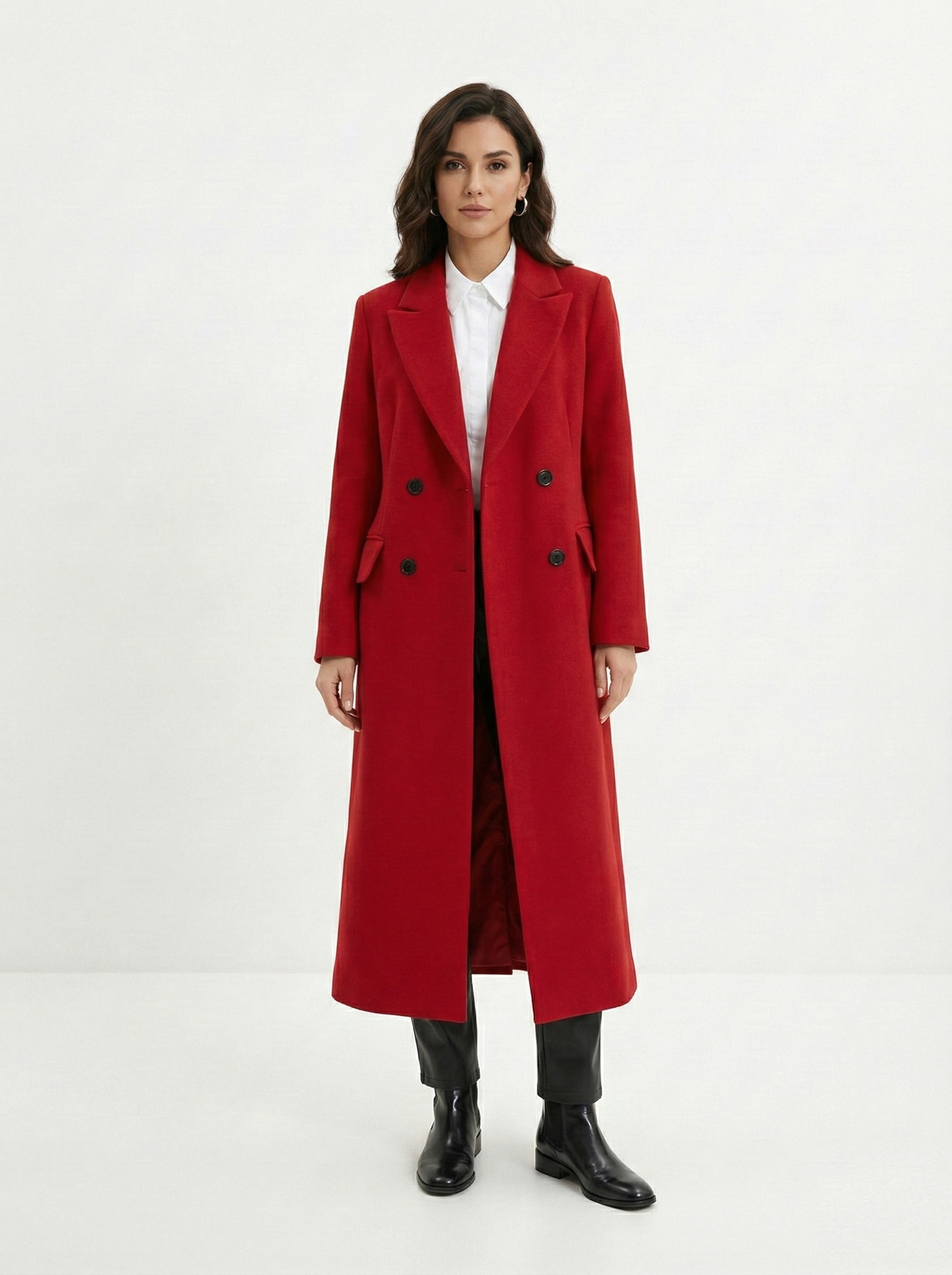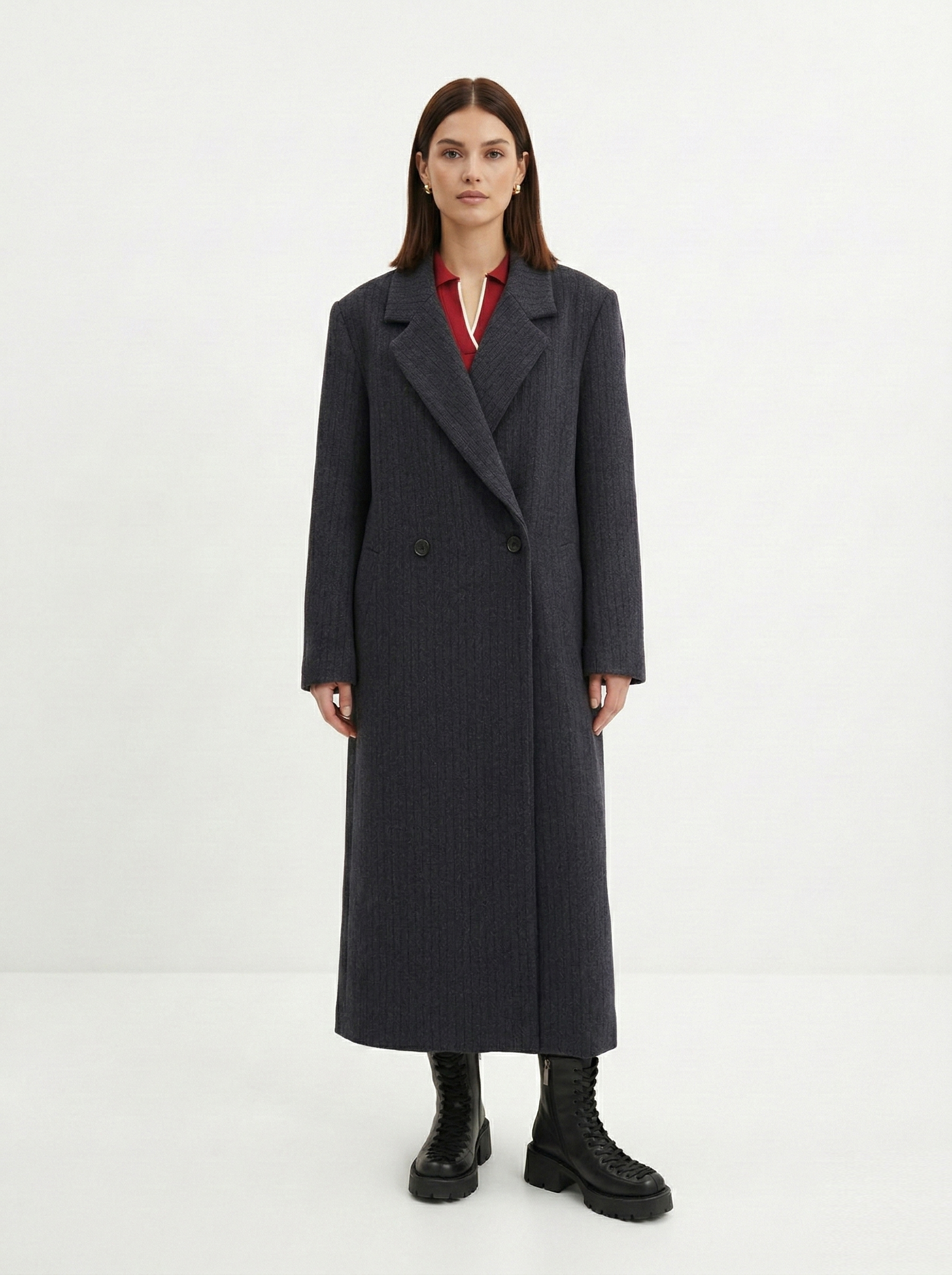 Длинные пальто вытягивают силуэт, поэтому подойдут девушкам с разными типами фигур и ростом. Главное — верно расставить акценты. К короткой юбке подойдут высокие ботфорты, а к джинсам — ботинки на плоской подошве или небольшой платформе.