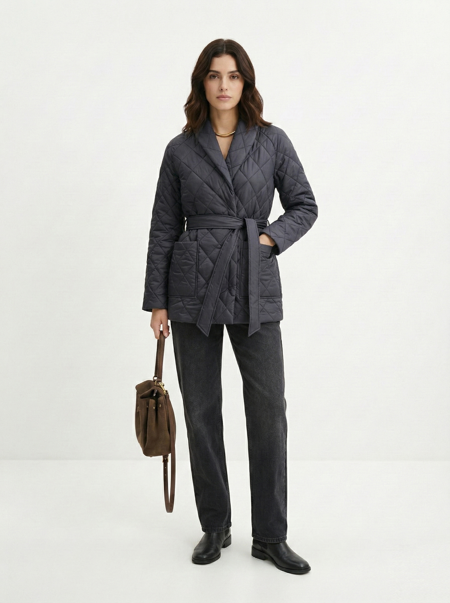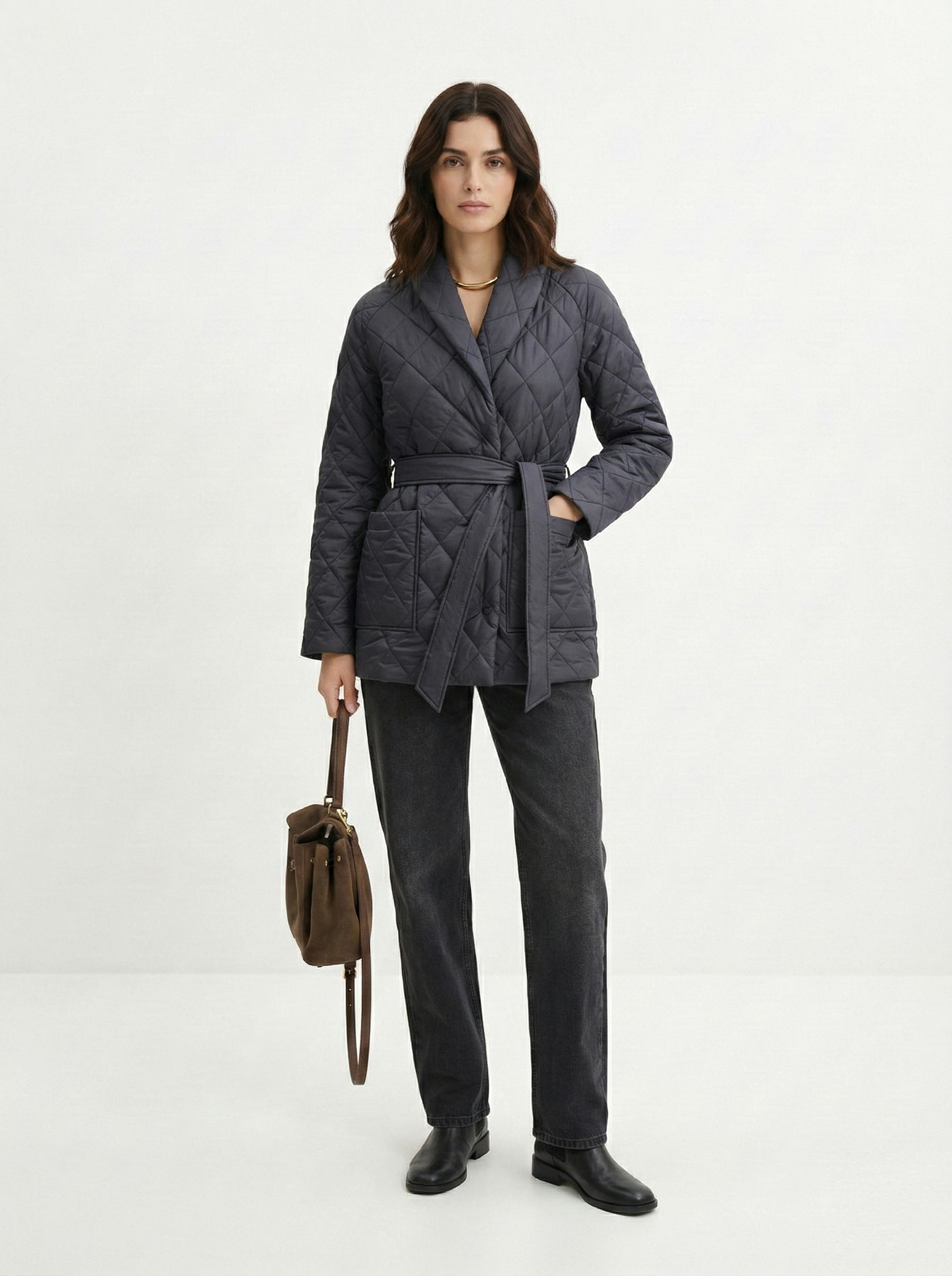 Стеганое пальто все еще в моде. Оно удобно в носке, за ним не так сложно ухаживать и к тому же оно отлично помогает сохранить тепло. Популярнее всего модель с поясом, в продаже также есть укороченные варианты или же наоборот — пальто в пол. Если вы выбираете верхнюю одежду на позднюю осень, то обращайте внимание, чтобы в составе стеганого пальто был утеплитель.