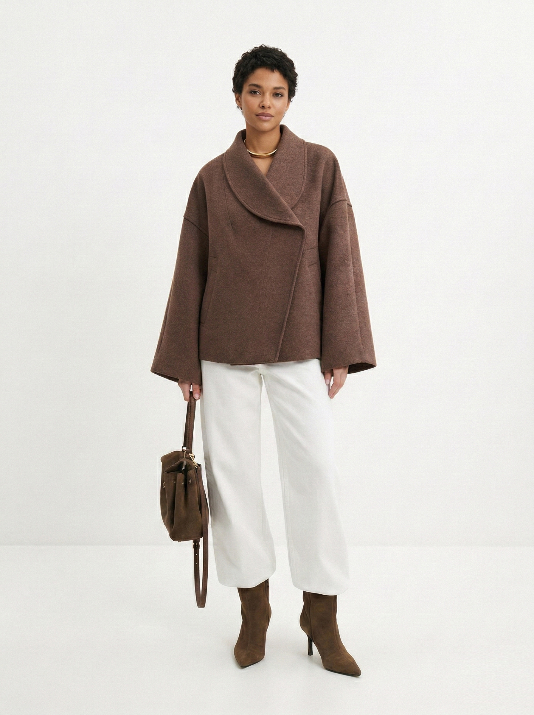 Укороченный вариант будет хорошо смотреться с юбкой средней длины или расклешенными брюками. В моде экстракороткие пальто-жакеты, а также А-силуэт и фасон-кимоно.