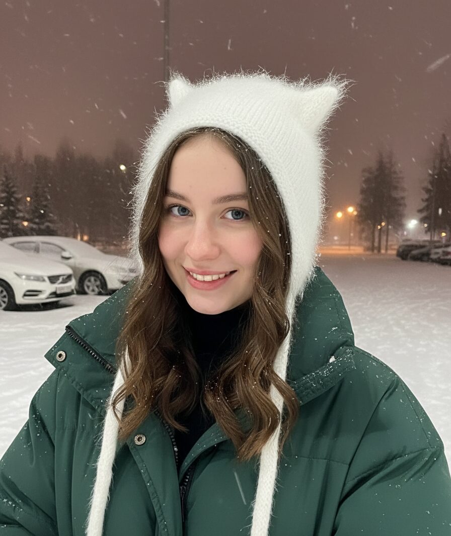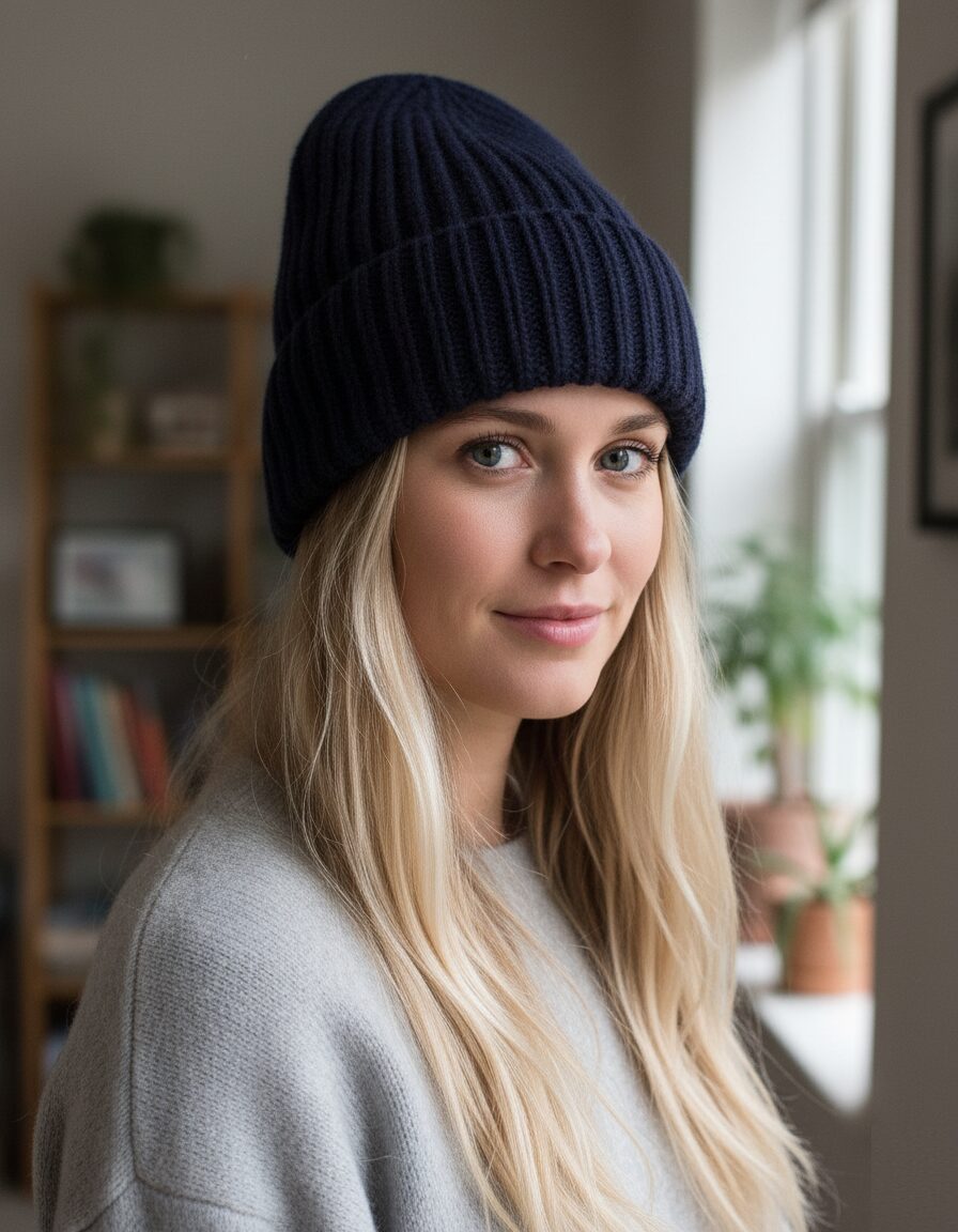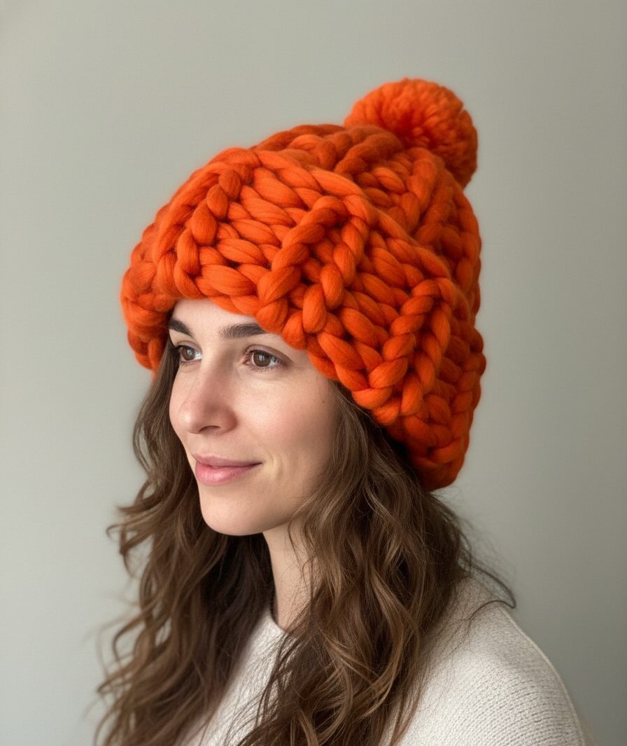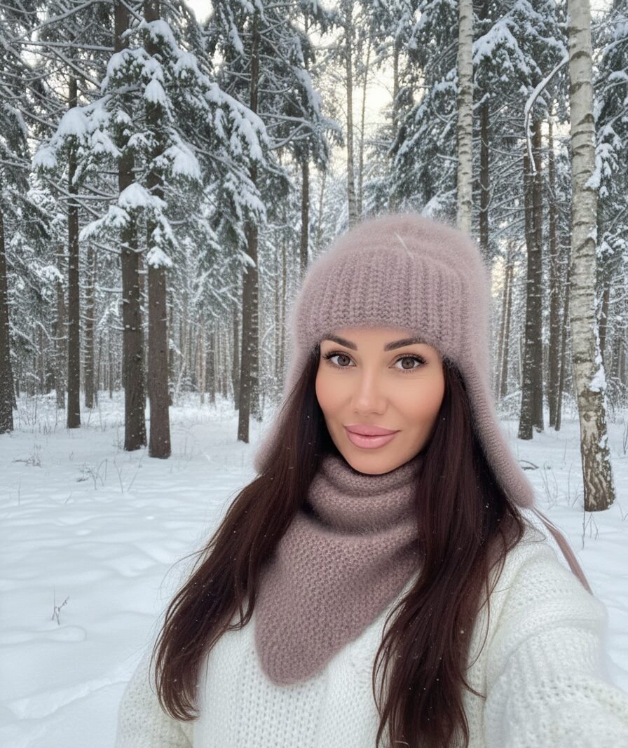 - Фактурное сочетание. Если шапка крупной вязки — уравновесьте ее похожими текстурами в одежде или шарфе, чтобы образ выглядел цельным.