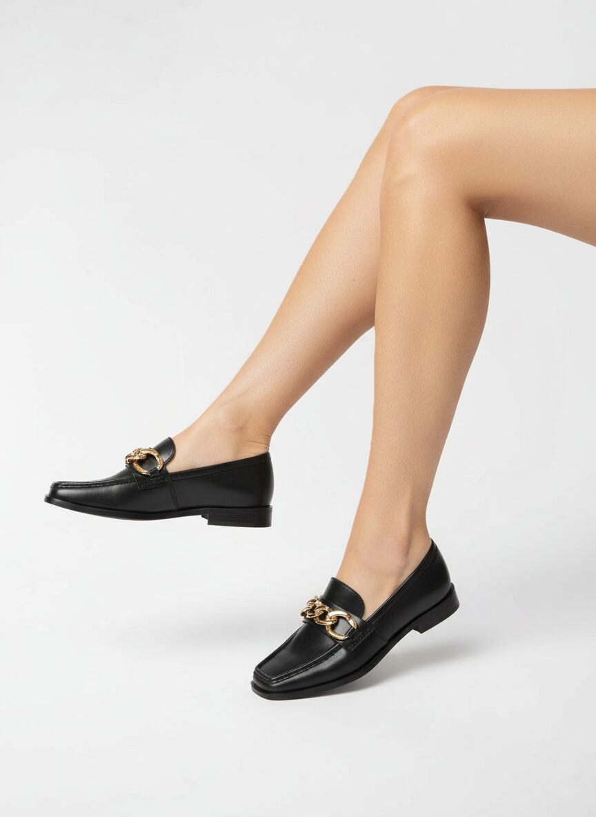 Мода в 2026 году отходит от уличного стиля, сейчас актуальна элегантность. Самые модные черные туфли — с миндалевидным вырезом, на шпильке или каблуке-рюмочке. Еще в образ можно добавить изюминку, выбрав лодочки с металлическим носком. Цвет металла выбирайте под фурнитуру и аксессуары.