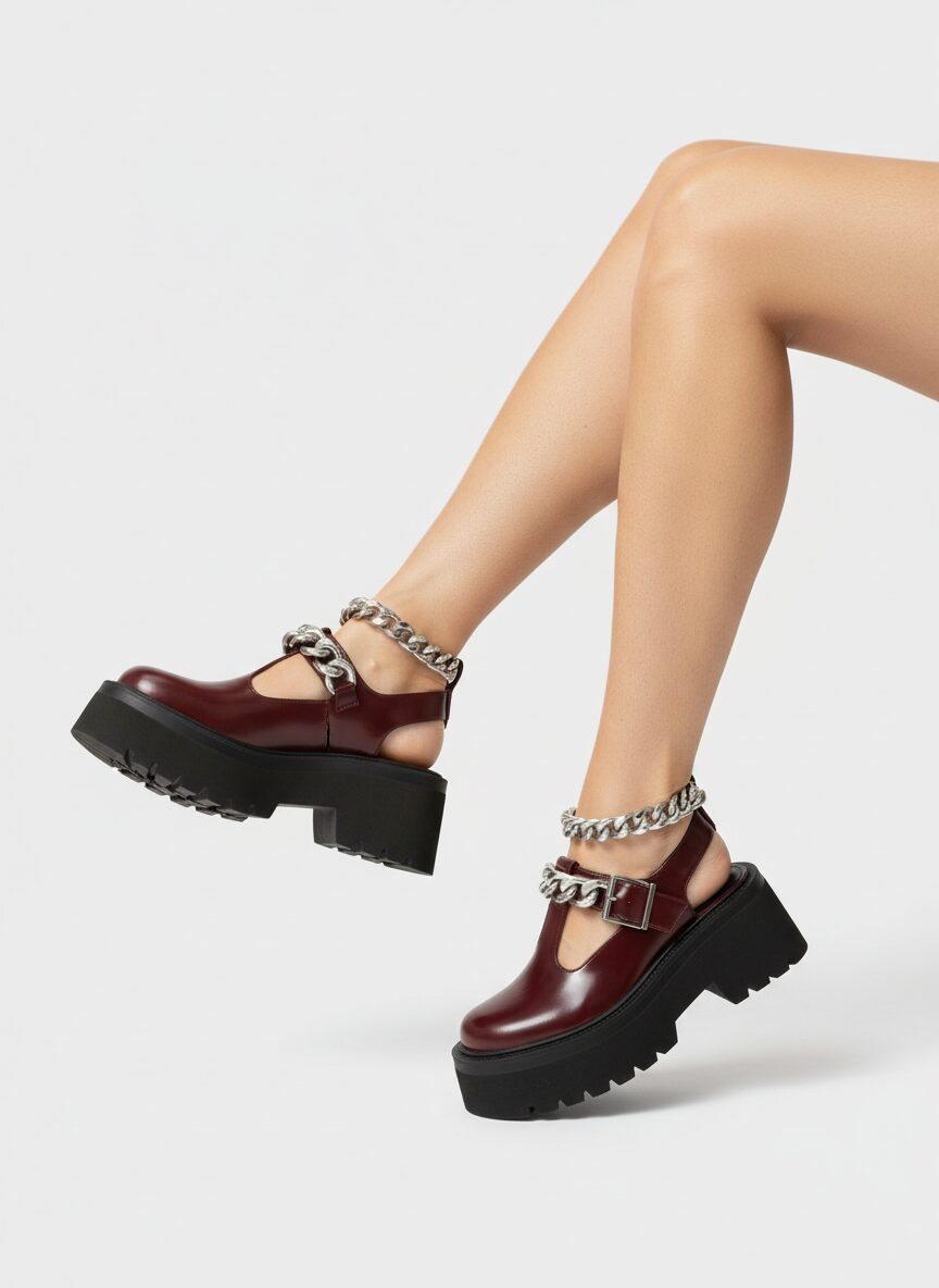 Пару лет назад модные эксперты призывали отказаться от туфель на танкетке. И вот в 2026 году из устаревшей модели они снова превращаются в ультрамодную, но уже с некоторыми изменениями в форме и палитре. Сегодня актуальный материал для таких туфель — матовая и лаковая кожа. Трендовое цветовое направление — основной оттенок с акцентной деталью. Например, яркие красные туфли и прозрачная танкетка.