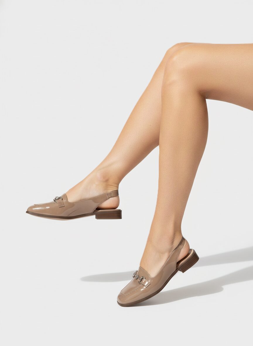 - Открытая пятка. Мюли и слингбэки с ремешком или полностью открытой пяткой — универсальный вариант, подходящий под многие виды дресс-кода.