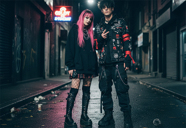 Стиль одежды включает мрачные цвета, рваные ткани, необычные украшения. Есть стремление создать впечатление разрушения и порочности. Люди будто всем своим существом противопоставляют себя общепринятым стандартам красоты и благополучия.