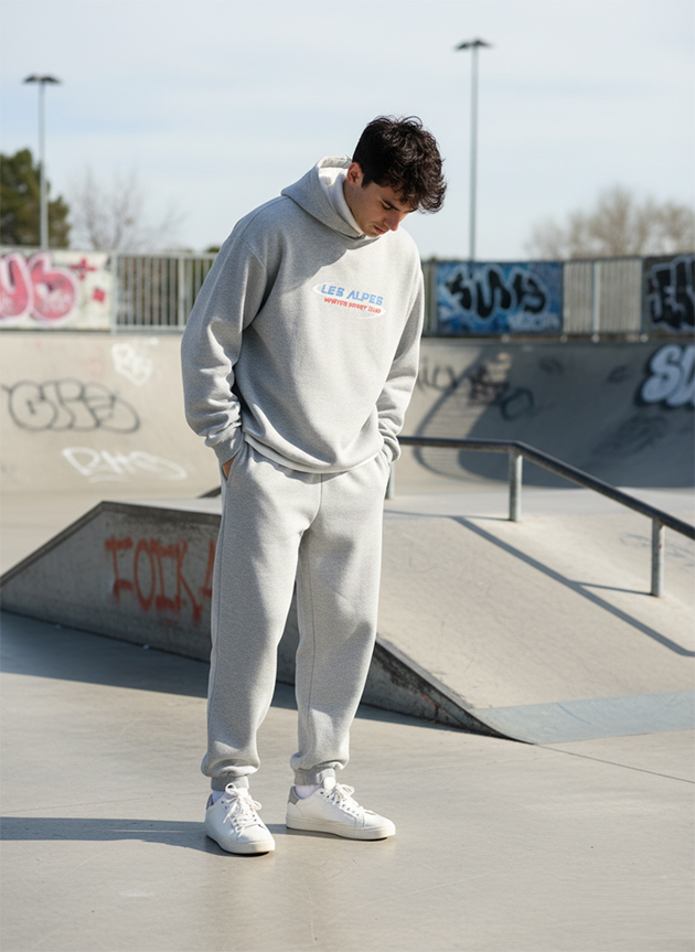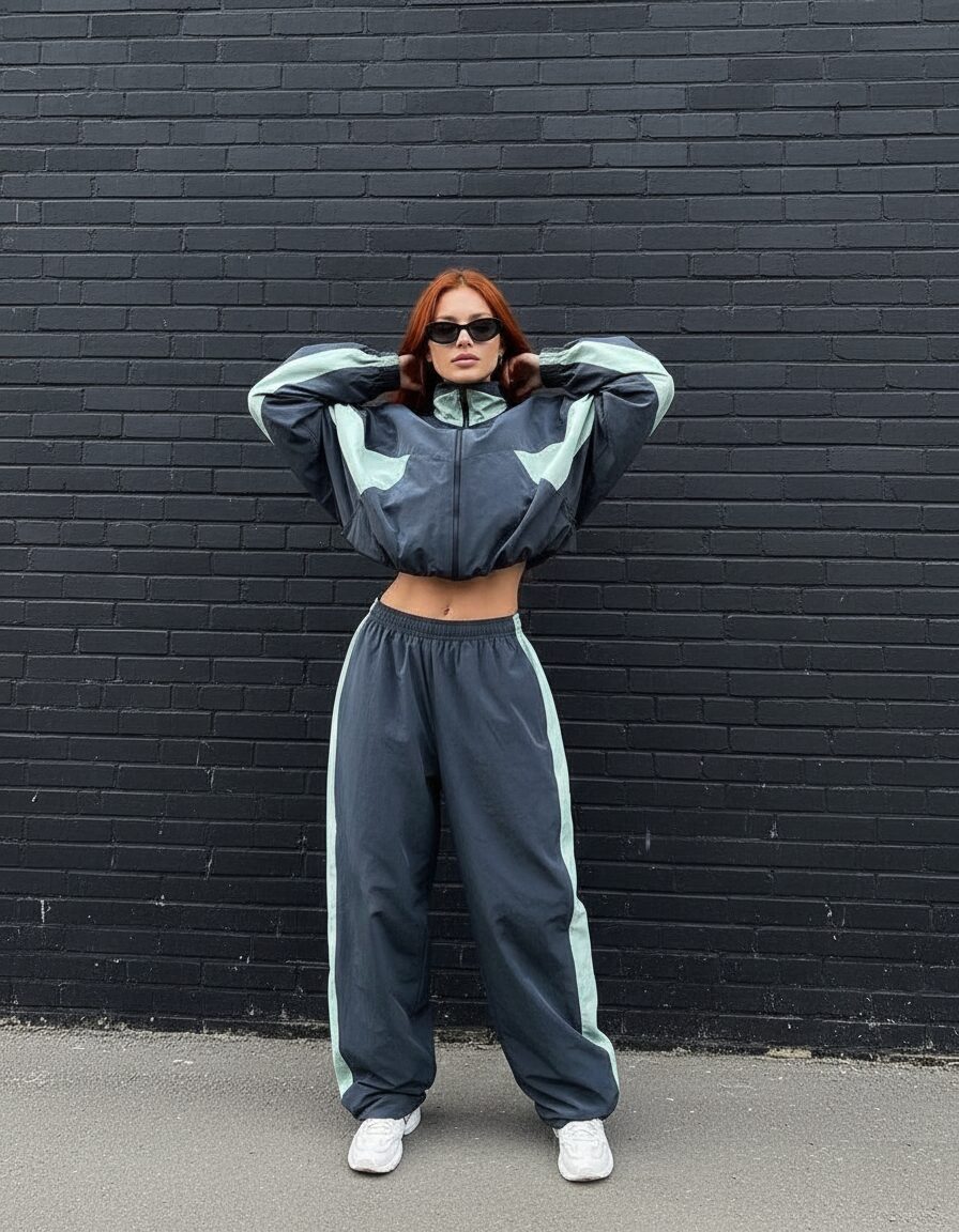 - Основные элементы — спортивные костюмы, брюки карго, худи, свитшоты, футболки кроя оверсайз;