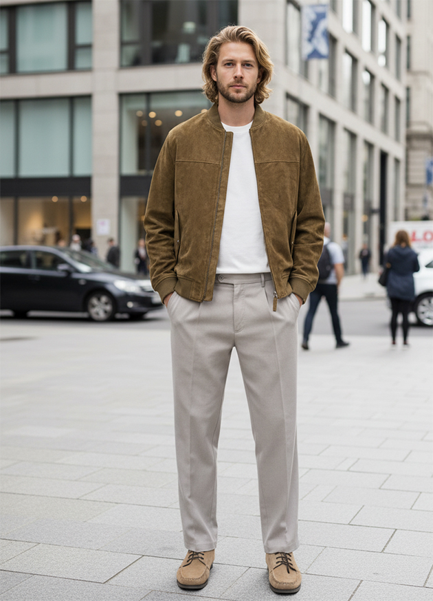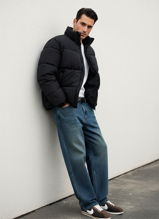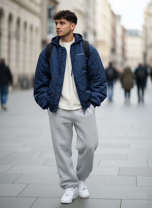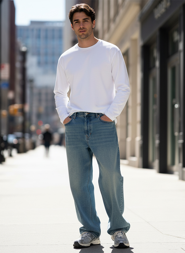 В эту капсулу входят джинсы straight или slim-straight из плотного денима, чиносы из смесовой ткани, футболки из хлопка, светлые и голубые рубашки из оксфорда или поплина средней плотности, свитшоты и худи без крупных логотипов, легкие бомберы или куртки-харрингтоны, а также универсальная обувь — от кожаных кроссовок до лоферов.