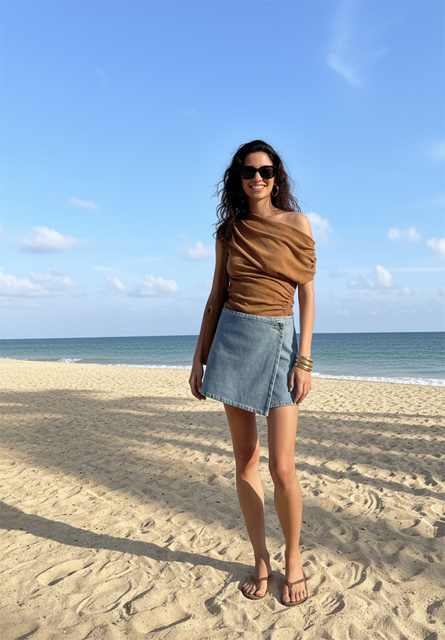 Рекомендуем присмотреться к джинсовым шортам и юбкам, легким брюкам, любимым и удобным фасонам платьев. Дополните свой лук кедами, слингбэками или босоножками.