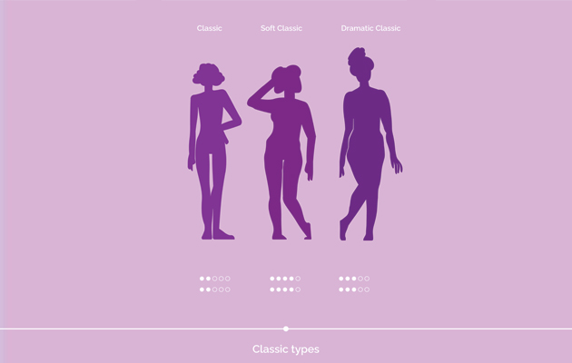 Внутри типажа выделяют несколько направлений, в зависимости от того, какие черты начинают слегка смещаться в сторону инь или ян. Мягкий классик — более иньская версия типажа. Внешность становится чуть мягче и женственнее: появляются плавные линии тела, деликатные черты лица, легкая округлость форм. При этом общая симметрия и баланс сохраняются. Образ выглядит более нежным и пластичным. Чистый классик — максимально сбалансированный вариант без перевеса в стороны. Пропорции тела ровные, черты лица гармоничные и нейтральные. Это наиболее эталонное проявление классического типажа — спокойное, элегантное и универсальное. Драматический версия — с усилением ян-компонента. Внешность становится более структурной: черты лица чуть острее, линии тела более собранные, образ более строгий и выразительный. При этом сохраняется базовая симметрия и сдержанность классика.