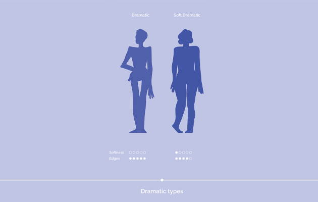 У этого типажа существует и менее резкая вариация — мягкий драматик. В этом случае к вытянутым линиям добавляются округлые формы: появляется более заметная грудь, бедра, мягкость в чертах лица. Внешность остается выразительной и сильной, но в ней появляется чувственность. Такой тип сочетает в себе строгость и женственность, поэтому и стилистические решения для него требуют баланса — между структурой и мягкостью.