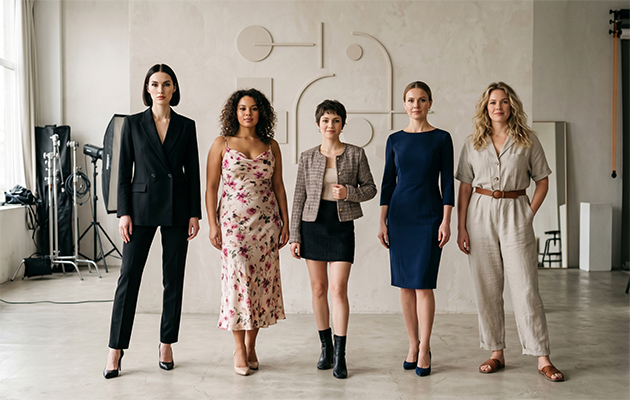 - Проверить результат через одежду. Практическая проверка проводится через силуэты и ткани. Оценивается, как вещи взаимодействуют с внешностью: поддерживают ли они линии тела, усиливают ли гармонию или, наоборот, нарушают ее.