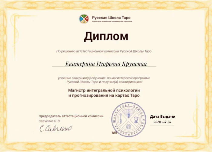 Магистр интегральной психологии и прогнозирования на картах Таро