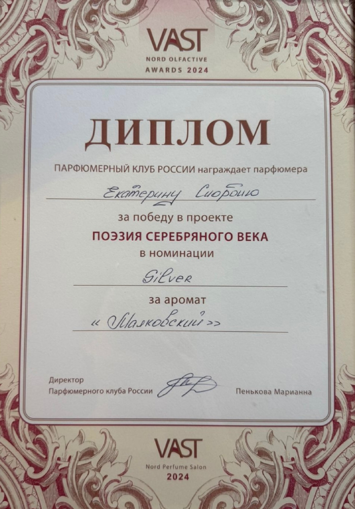 Основатель бренда авторской парфюмерии Siordia Parfums. Создает ароматы почти 20 лет. Несколько лет практики в Германии. Создала более 2000 индивидуальных ароматов.