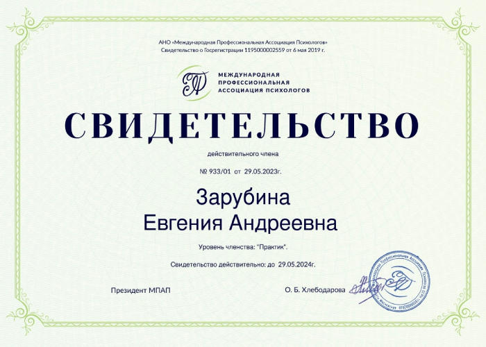 Член международной ассоциации психологов.