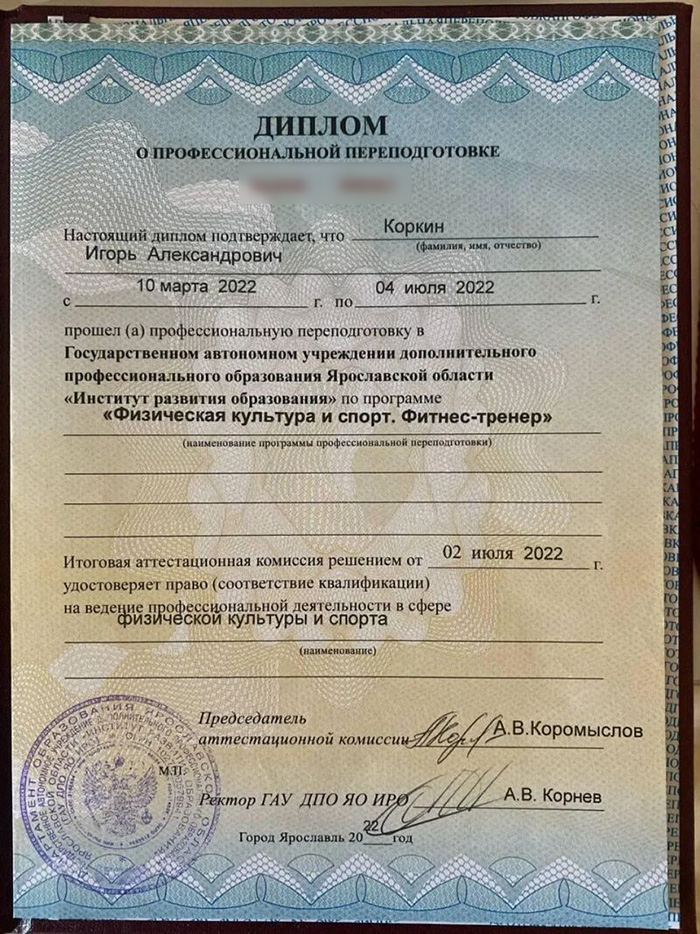 • более 3000 довольных клиентов;• дипломированный специалист в сфере физической культуры и спорта;• профессиональная тренерская деятельность более 13 лет;• КМС по гиревому спорту и военному многоборью
