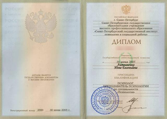 Основное образование: Санкт-Петербургский государственный институт психологии и социальной работы.