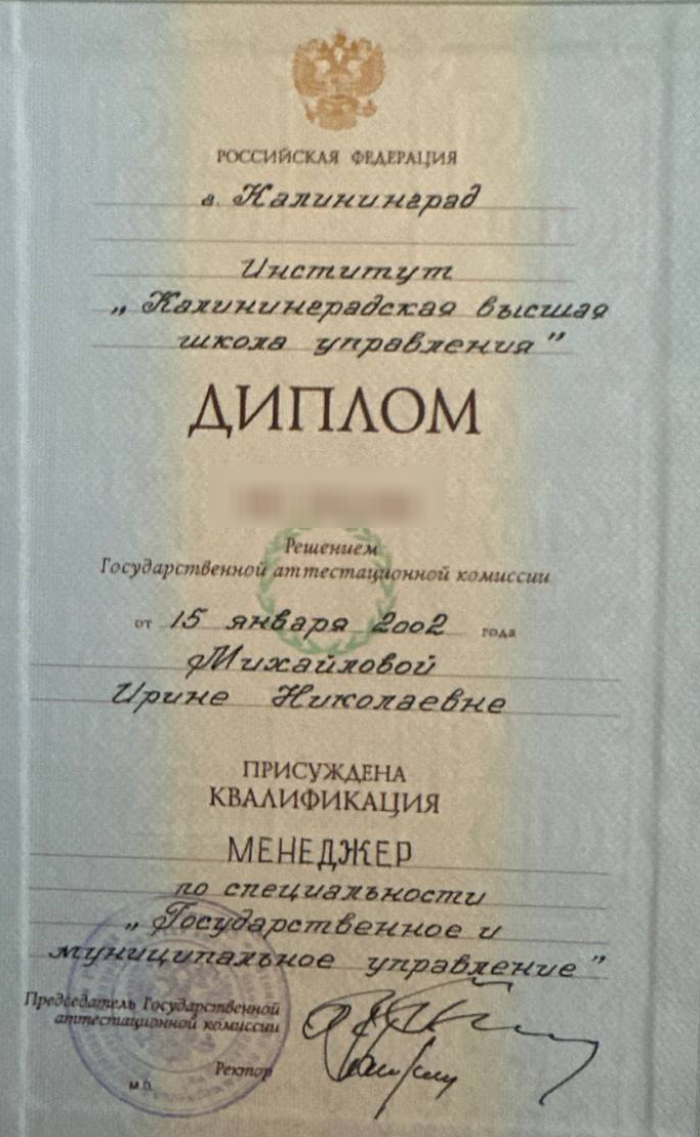 Образование: БФУ имени Канта, Калининградская Школа Управления, курсы Таро. Проводит обучение по таро и рунам.