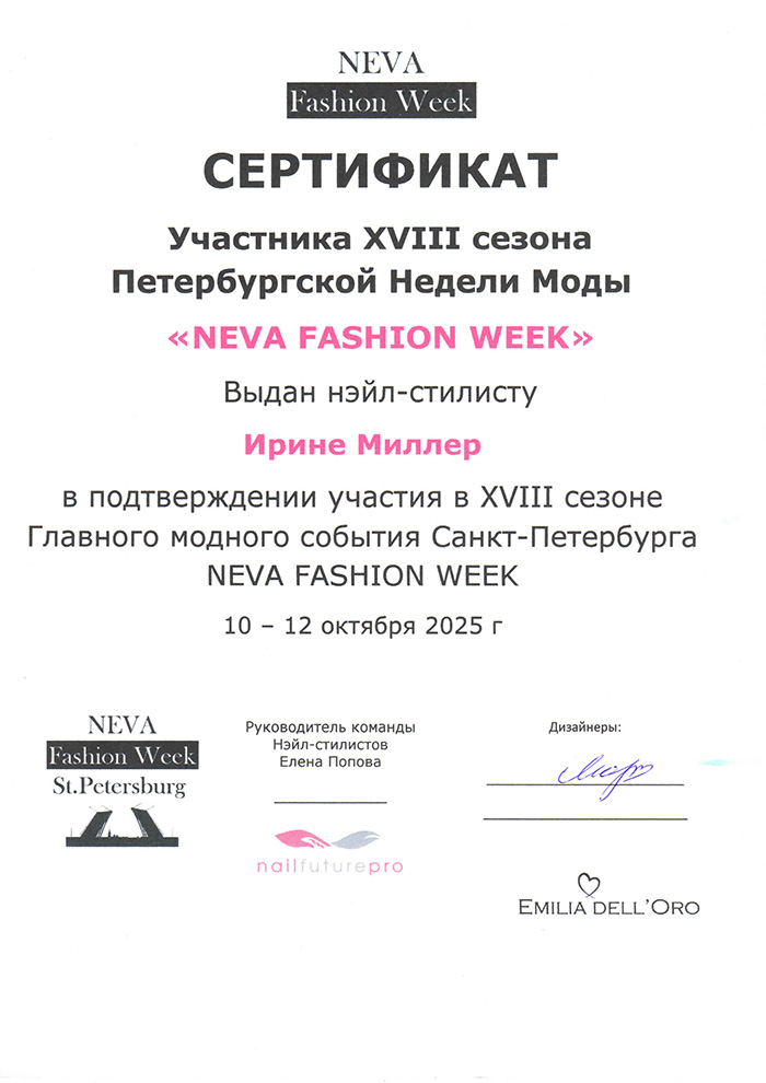 Мастер маникюра, победитель международных nail-чемпионатов, спикер online площадок, нейл стилист на неделях моды, автор научной статьи «Стерилизация инструментов в сфере маникюра: сравнительный анализ российских и международных стандартов», участник профессиональных выставок и арт-проектов в индустрии красоты, член Евразийского Художественного Союза в секции Нейл Арт