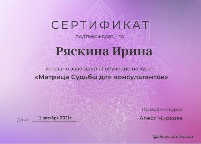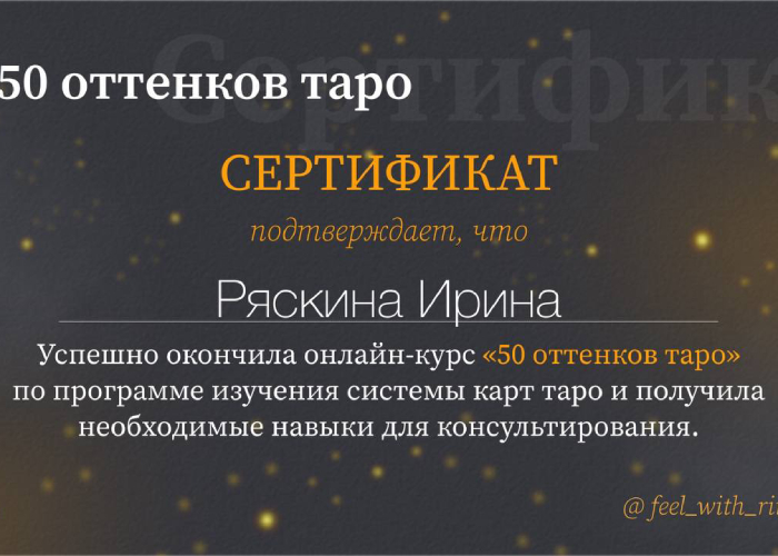 Я обладаю обширными знаниями в разных методах и системах самопознания. В работе использую свой авторский подход – синтезирую: западную астрологию, нумерологию, таро.