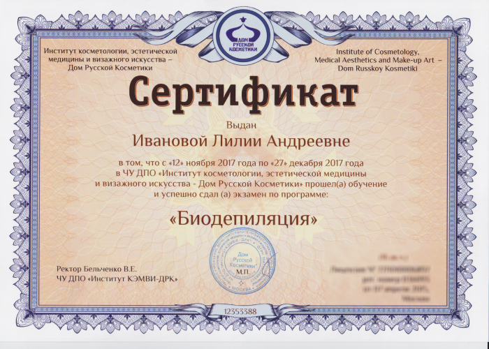 - Эксперт по эстетической косметологии и имиджеологии;
